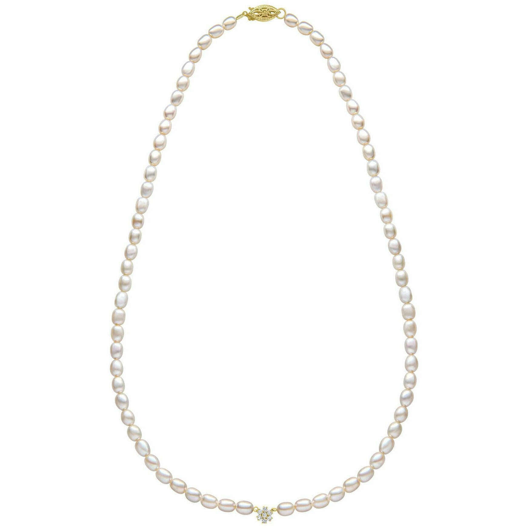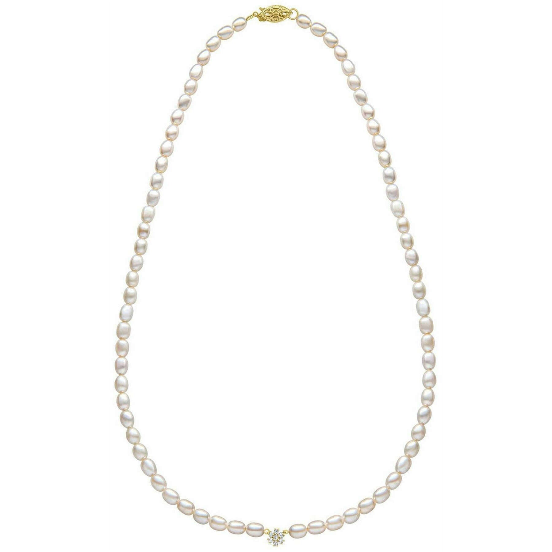 Elements Gold Seed Pearl and Flower 9kt guldhalsband - guld/vit