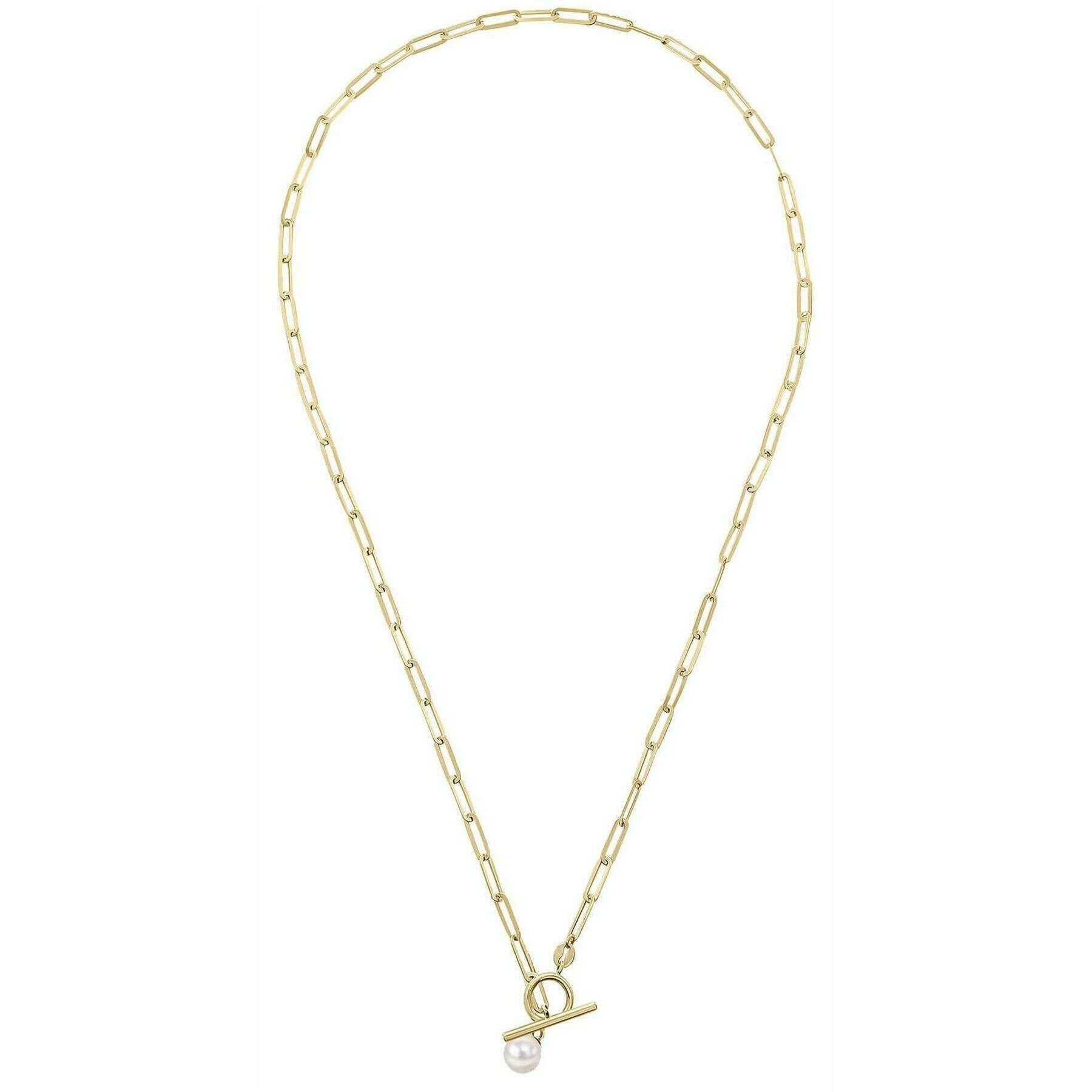 Elements Gold T Bar kedja med sötvattenspärla 9kt guldhalsband - guld/vit