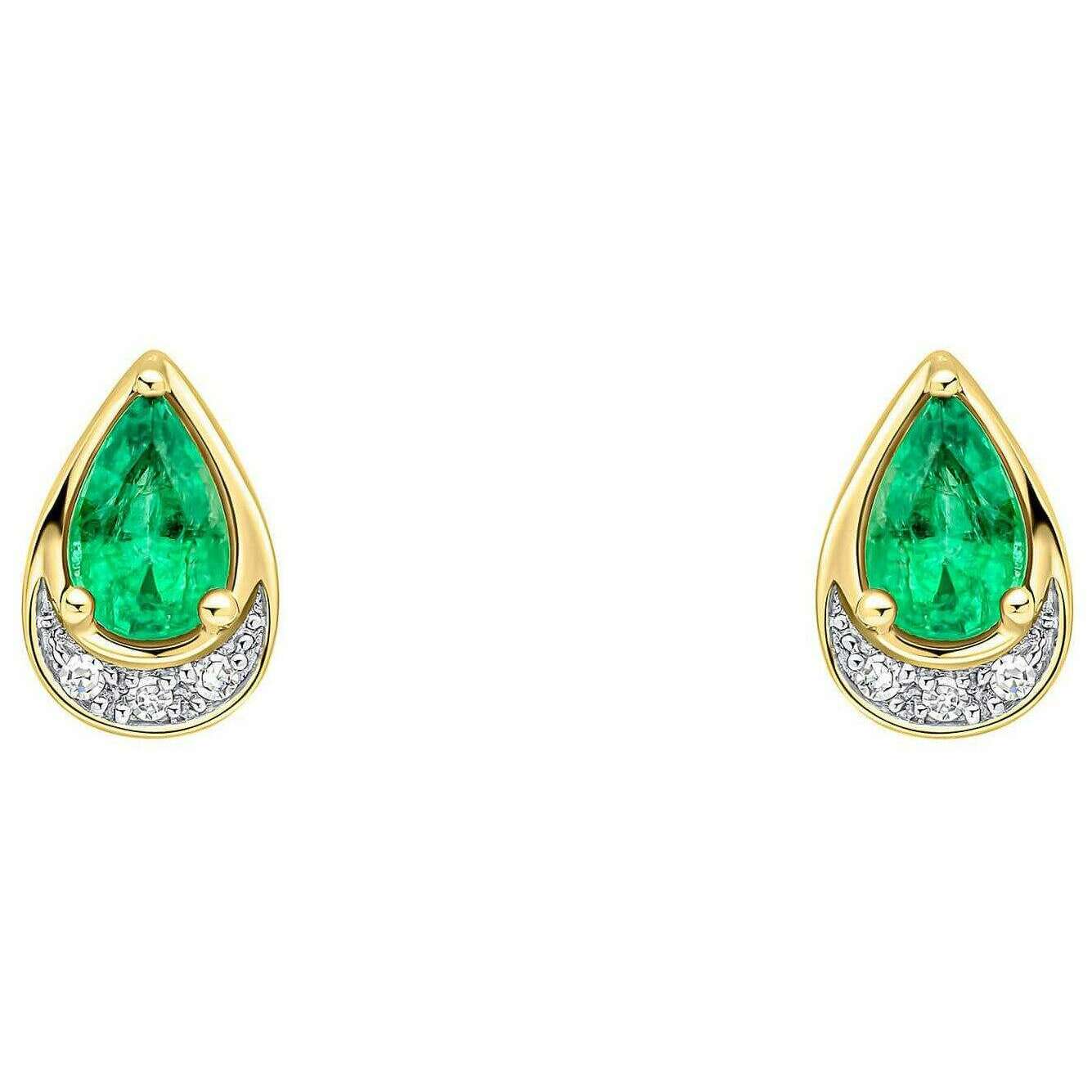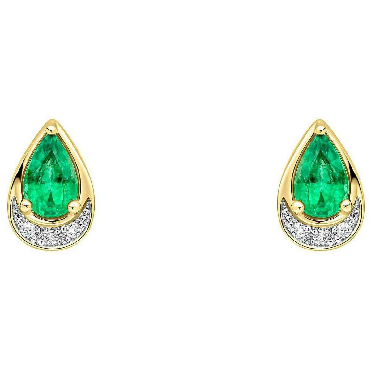 Elements Gold Teardrop Emerald and Diamond 9kt guld örhängen - grön