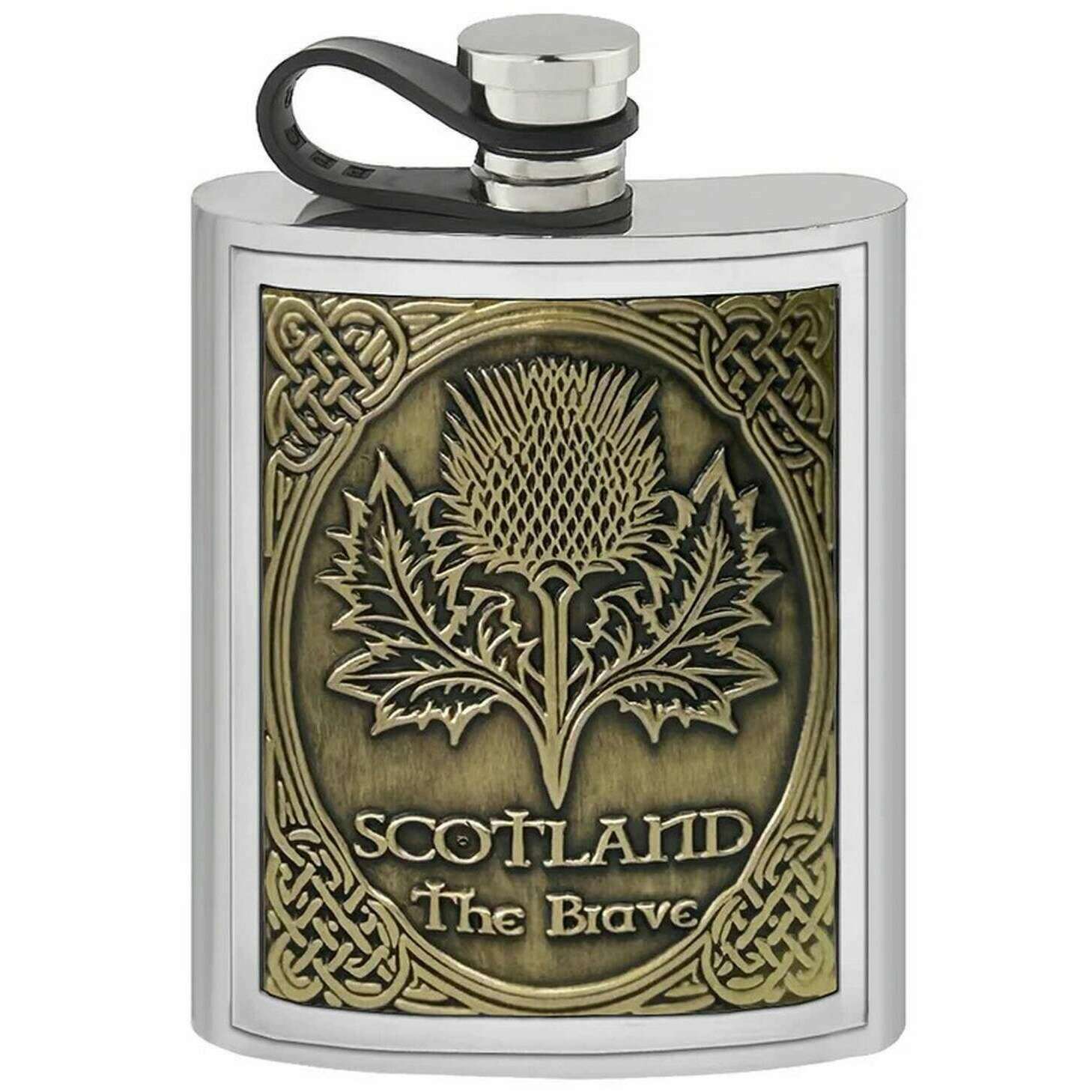 English Pewter Company 6oz präglad tistel tennkolv - silver/mässingguld