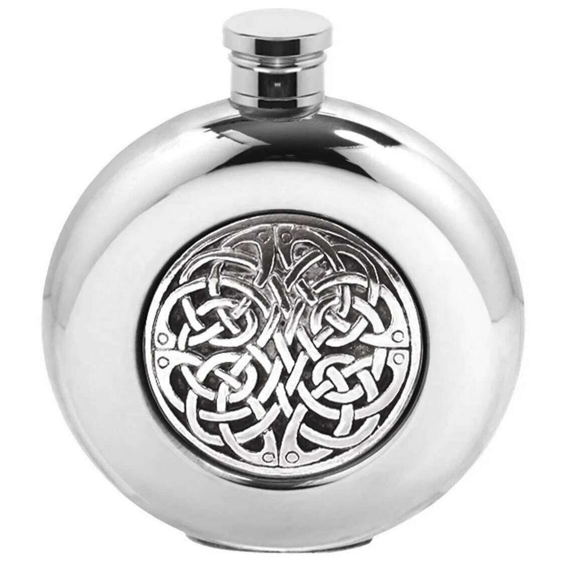 English Pewter Company 6oz Round Celtic Disk Flask - Silver
