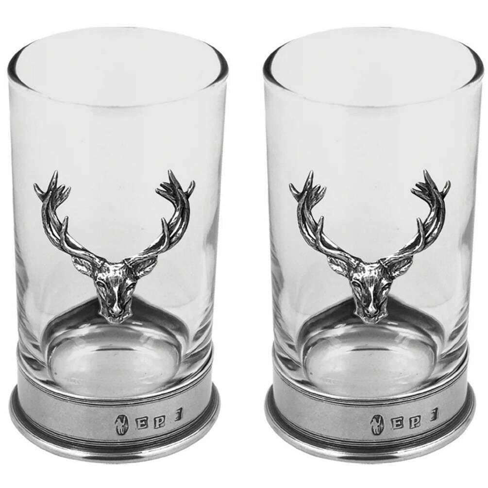 English Pewter Company 8 3/4 Double Stag Highball Spirit Glass Set - Silver/Clear