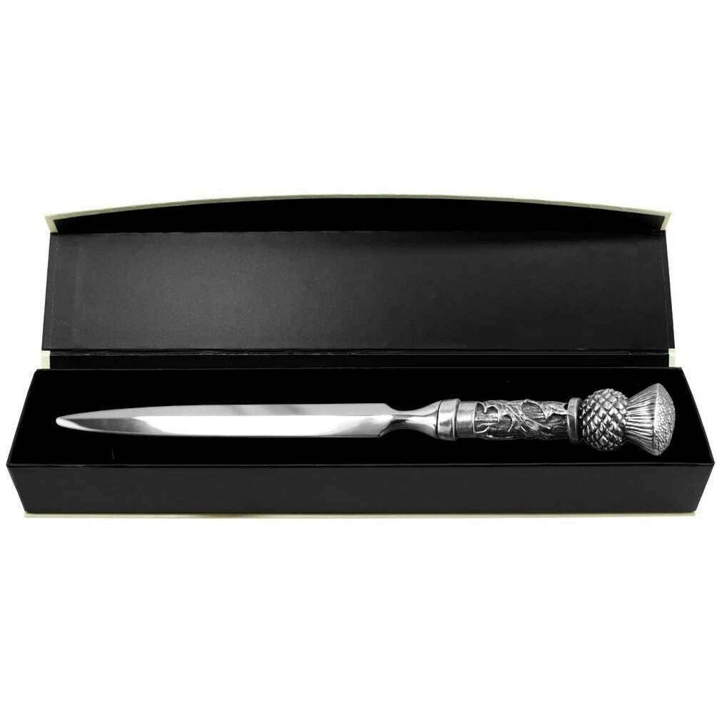 Tillverkad av Pewter är denna Silver Unisex Thistle Letter -öppnare av Designer English Pewter Company. Den mäter 21,5 cm (höjd). Alla skrivbordstillbehör är komplett i en engelsk presentförpackning för tennföretag. Det engelska Pewter Company Thistle Letter Opener - Silver är ett idealiskt tillbehör att behöva lämna när det gäller att öppna din post, vilket ger dig ett rent snitt snarare än de oändliga ripparna du får när du använder fingrarna. Det är en mycket enklare metod som gör uppgiften mycket effektivare.