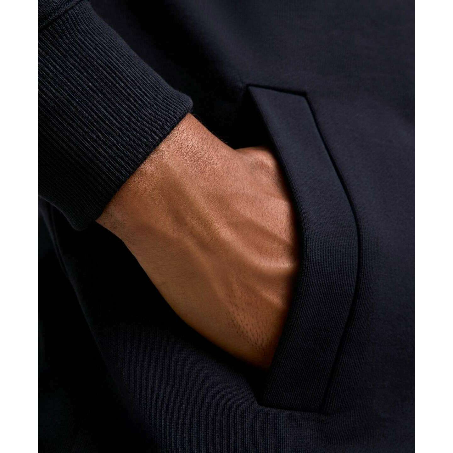 • Certifierad organisk bomull , medelvikt , öglestruktur , Regular Fit , Elastiska ribbade ärmslut , sidofickor