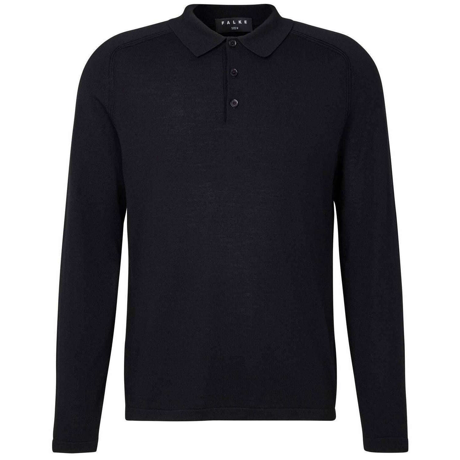 Falke Merino Ultra-fin långärmad pikétröja - svart