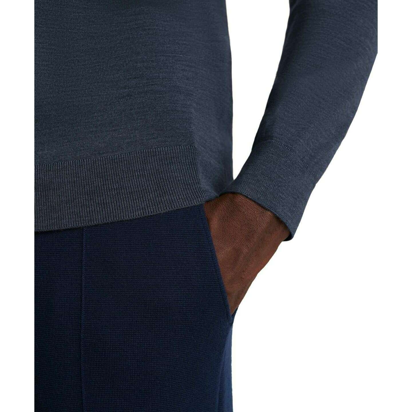 • Jerseystickad, lätt, franska axelsömmar, elastiska ribbstickade muddar på bål och ärmar, Mulesingfri merinoull, normal passform