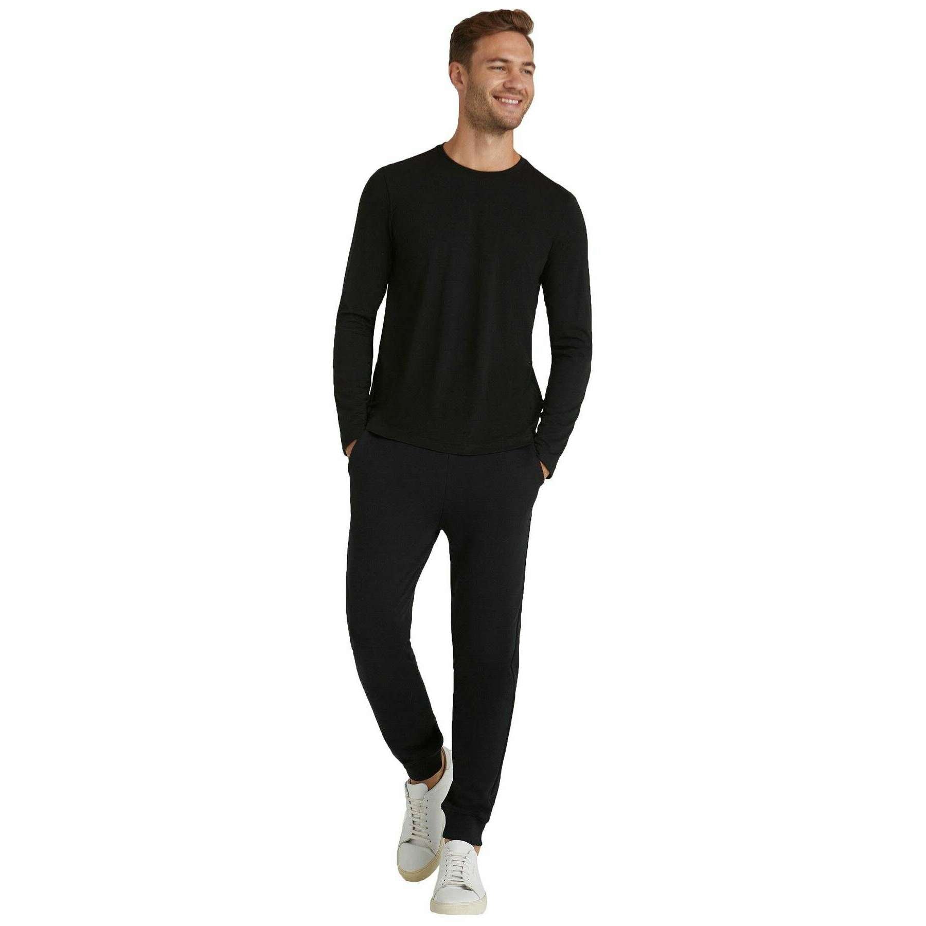 Falke Pima Jersey långärmad T-shirt med rund hals - Svart