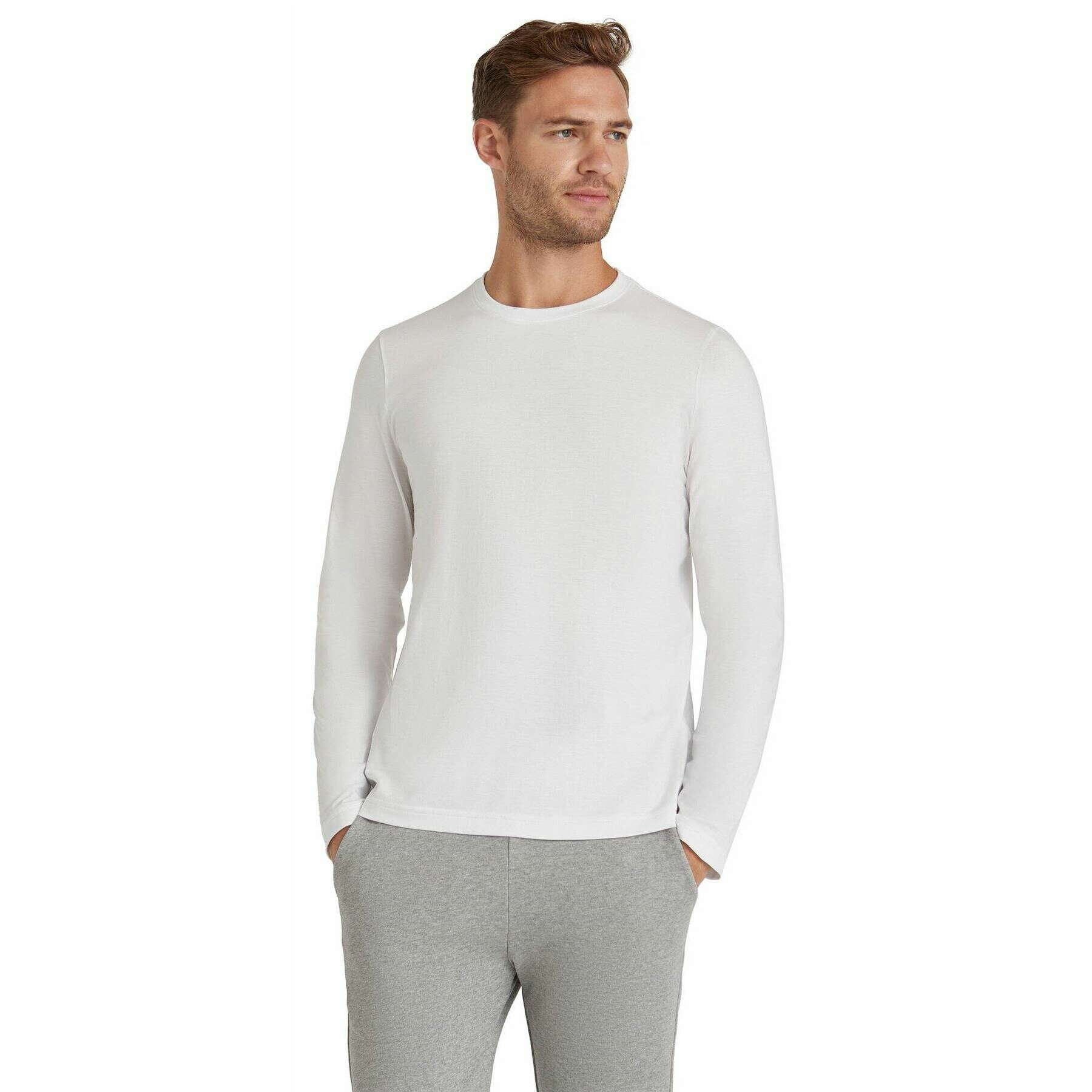 Falke Pima Jersey långärmad T-shirt med rund hals - Vit