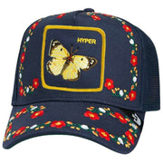 Denna välgjorda unisex hyperaktiva truckerhatt från Goorin Bros kommer i en marin färg och är tillverkad av 57 % polyester och 43 % bomull. Alla hattar levereras kompletta med goorin bros-taggar. Goorin Bros Hyper Active Trucker Hat - Navy är gjord för alla som ger livlighet vart de än går. Det broderade fjärilsmotivet på framsidan blir en levande fokuspunkt, som perfekt återspeglar bärarens livliga, dynamiska natur. Den djupa marinblå basen tillsammans med ett lekfullt blommigt broderimönster ger en extra boost av stil och positivitet. Den andningsbara mesh-ryggen håller huvudet svalt även när livet har dig att fladdra från A till B medan den justerbara snapback-stängningen säkerställer en flexibel, bekväm passform oavsett hur aktiv dagen blir. Ett måste-ha-tillbehör för alla som alltid är i rörelse, den här kepsen blandar charm, komfort och ostoppbar energi i en iögonfallande design.
