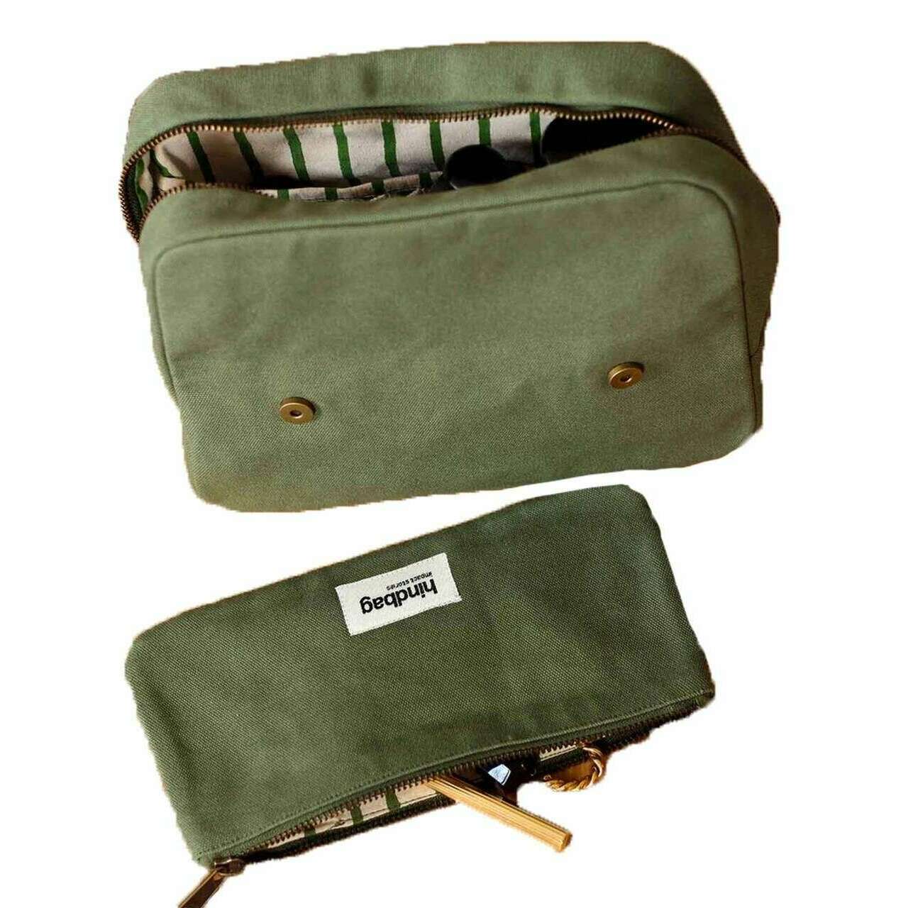 Denna Alix extra stora toalettväska för män eller kvinnor är utformad av varumärkespås i en grön färg och är tillverkad av 100% organisk bomull (500 g/m2). Den mäter 20 cm (höjd) x 25 cm (bredd) x 9 cm (djup). Alla väskor levereras kompletta med bakpåsförpackning. Hindbag Alix Extra Large Toalette -väska - Olive Green är den perfekta följeslagaren för långa resor. Genom att bestå av två magnetiskt fästfack som anpassar sig för att bilda en sammanhängande enhet, låter denna väska dig separera föremål som smink eller skarpa verktyg. Huvudfacket är högt med en bred öppning utformad för att hålla flaskor vertikalt, minska risken för läckor eller tippa medan sekundär påse är avtagbar och något mindre och är perfekt för att isolera bräckliga föremål, kosmetika eller skarpa redskap. För en färgstark och livlig toalettväska är denna Alix både funktionell och tillfredsställande att äga.