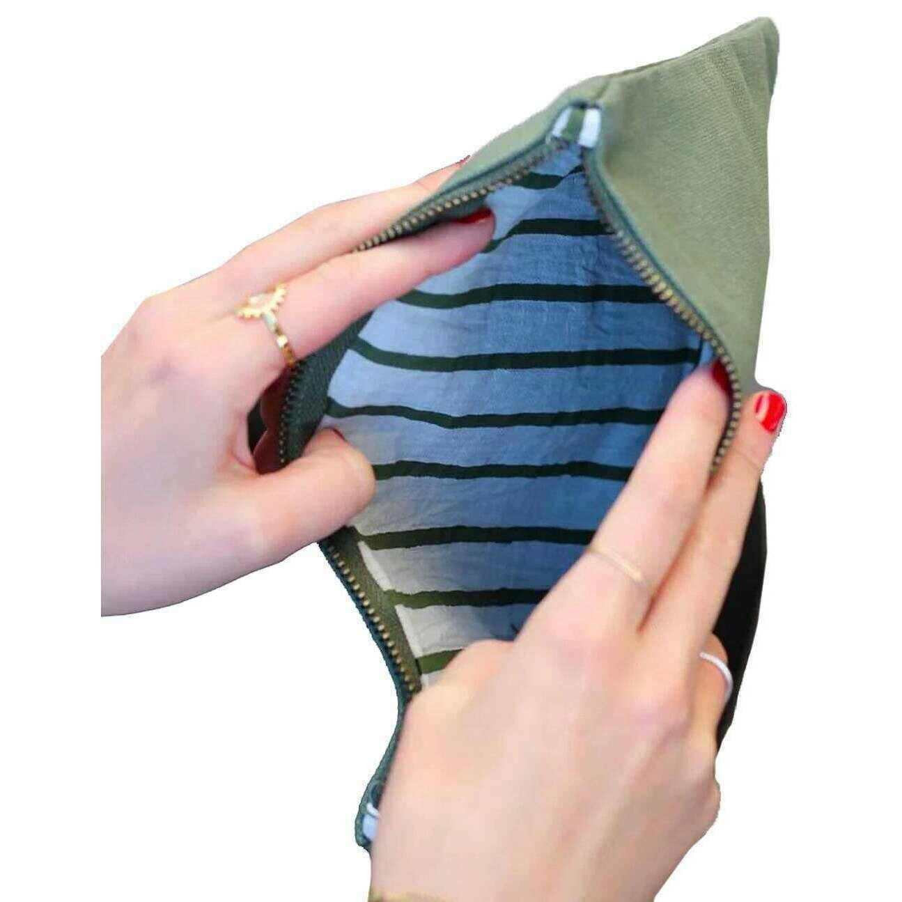 Tillverkad av 100% organisk bomull är denna olivgröna unisex EMA -medium zippade påse av designern bakpås. Den mäter 18 cm (höjd) x 25 cm (bredd). Alla väskor levereras kompletta med bakpåsförpackning. Hindbag EMA -medium ZIPPER POUCH - Olive Green är ett modernt, minimalistiskt och funktionellt tillbehör som är utformat för att lagra alla dina väsentliga föremål, till exempel kort, kontanter och små personliga tillhörigheter. Denna miljövänliga dragkedja med dragkedja har en super stark YKK-dragkedja och tjock bomull för att motstå alla faror i vardagen. Det handgjorda mönstrade fodret ger en touch av elegans till det här stycket.