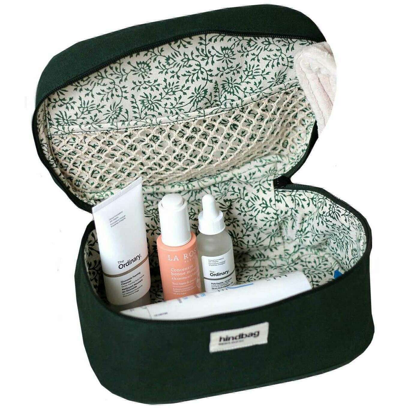 Designer Hindbag har gett dig denna unisex 100% ekologiska bomullsväska med skoggröna toner. Den mäter 13,5 cm (höjd) x 16 cm (bredd) x 25 cm (djup). Alla väskor levereras kompletta med bakpåsförpackning. Hindbag Gaspard Vanity Bag - Forest Green erbjuder både resenärer och vardagliga användare ett bekvämt och snyggt sätt att hålla sina toalettartiklar organiserade och tillgängliga. Det inre nätet är perfekt för att ordna toalettartiklar, kosmetika och andra personliga föremål. Detta fashionabla tillbehör är tillgängligt i en mängd färger och representerar en harmonisk sammansmältning av funktionalitet och estetik, som serverar dem som värderar både stil och praktik på sin resa.