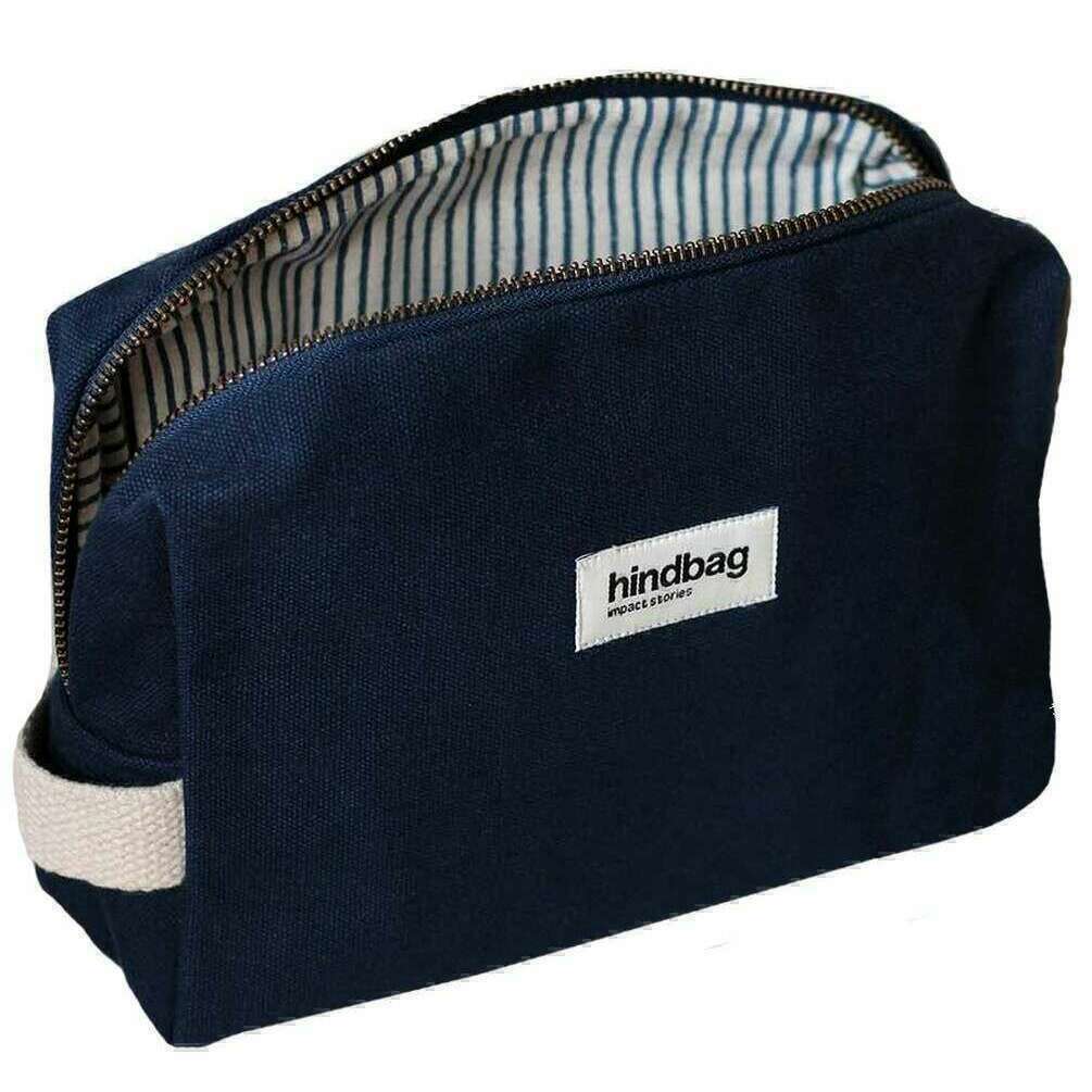 Denna Leon toalettväska för män eller kvinnor är utformad av varumärkespås i en blå färg och är tillverkad av 100% ekologisk bomull. Den mäter 16 cm (höjd) x 22 cm (bredd) x 8 cm (djup). Alla väskor levereras kompletta med bakpåsförpackning. Hindbag Leon toalettväska - Navy Blue är ett elegant och praktiskt tillbehör designad för resenärer och dagliga pendlare som värderar både stil och funktionalitet. Det praktiska handtaget säkerställer enkel hantering, och den säkra blixtlåsstängningen håller dina väsentliga säkra. Fodrad med matchande organisk bomull i ett blocktrycksmönster erbjuder denna väska gott om utrymme för dina toalettartiklar utan att vara skrymmande.