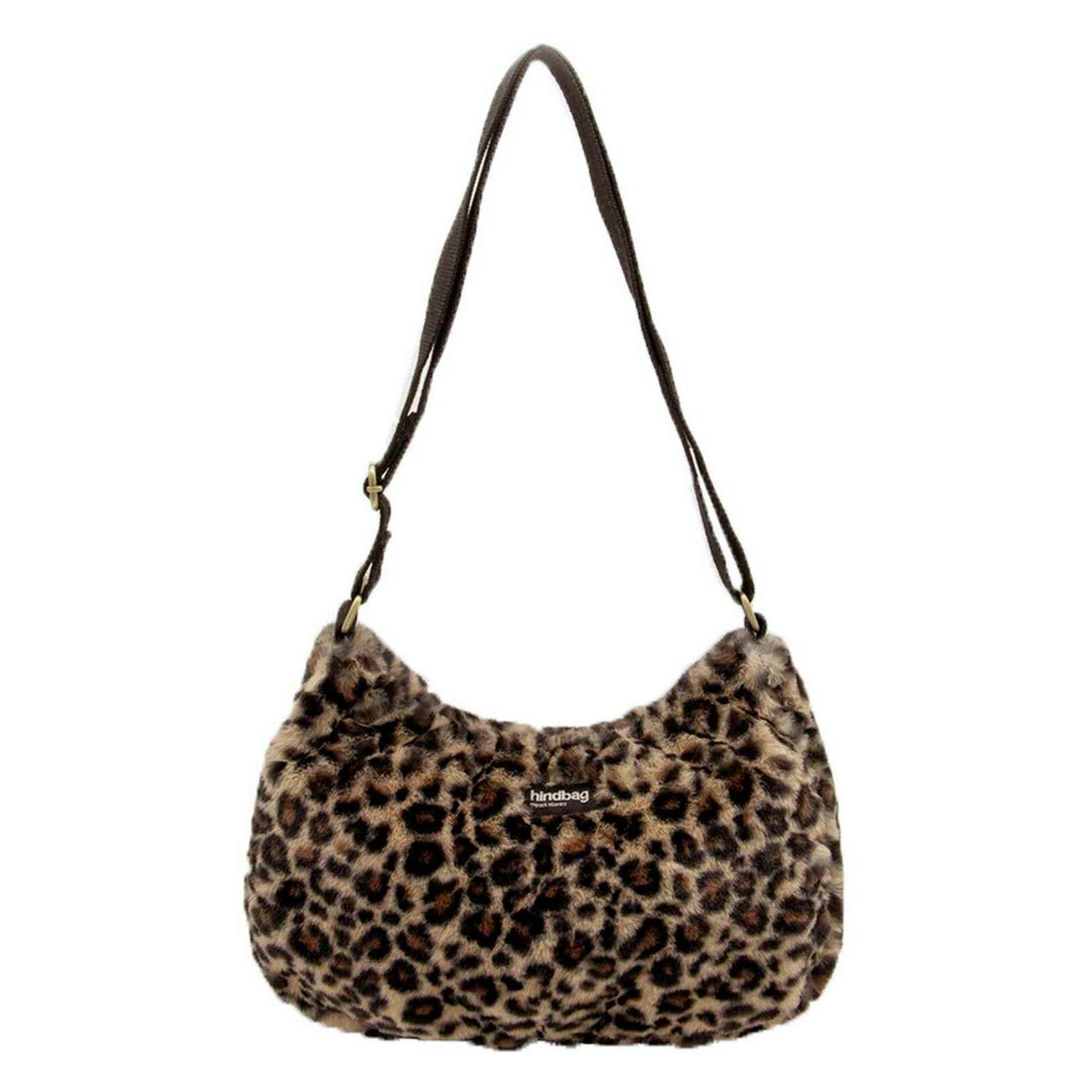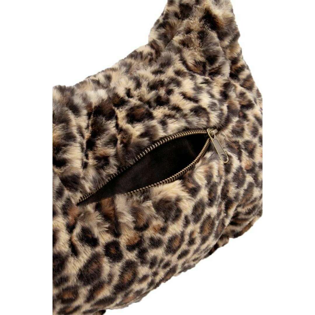 Hindbag Rosa stor axelväska - faux päls leopardbrun
