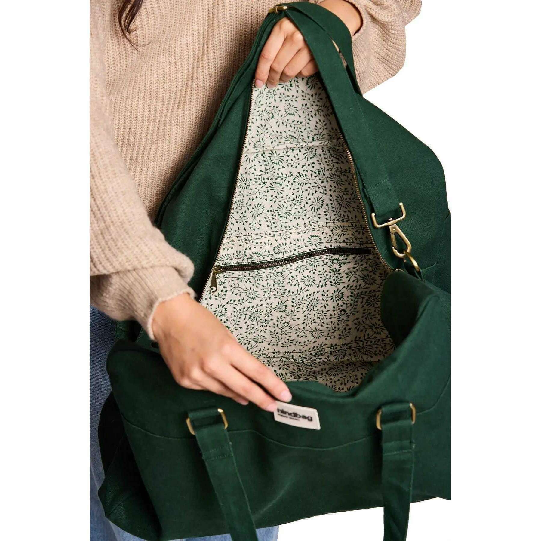 Denna unisex yves stora resväska har gjorts av 100% organisk bomull, med i en grön färg och kommer från varumärkesväskan. Den mäter 33 cm (höjd) x 54 cm (bredd) x 24 cm (djup). Alla väskor levereras kompletta med bakpåsförpackning. Hindbag Yves Large Travel Bag - Forest Green är ett rymligt och miljövänligt alternativ för resenärer. Denna väska är utformad från tjocka, gots-certifierade organiska bomull och har flera fickor för organisation, en säker dragkedja och ett tryckt inre foder som ger en touch av elegans. Med sina handtag och stora justerbara axelrem kan denna väska enkelt bäras för hand eller på axeln.