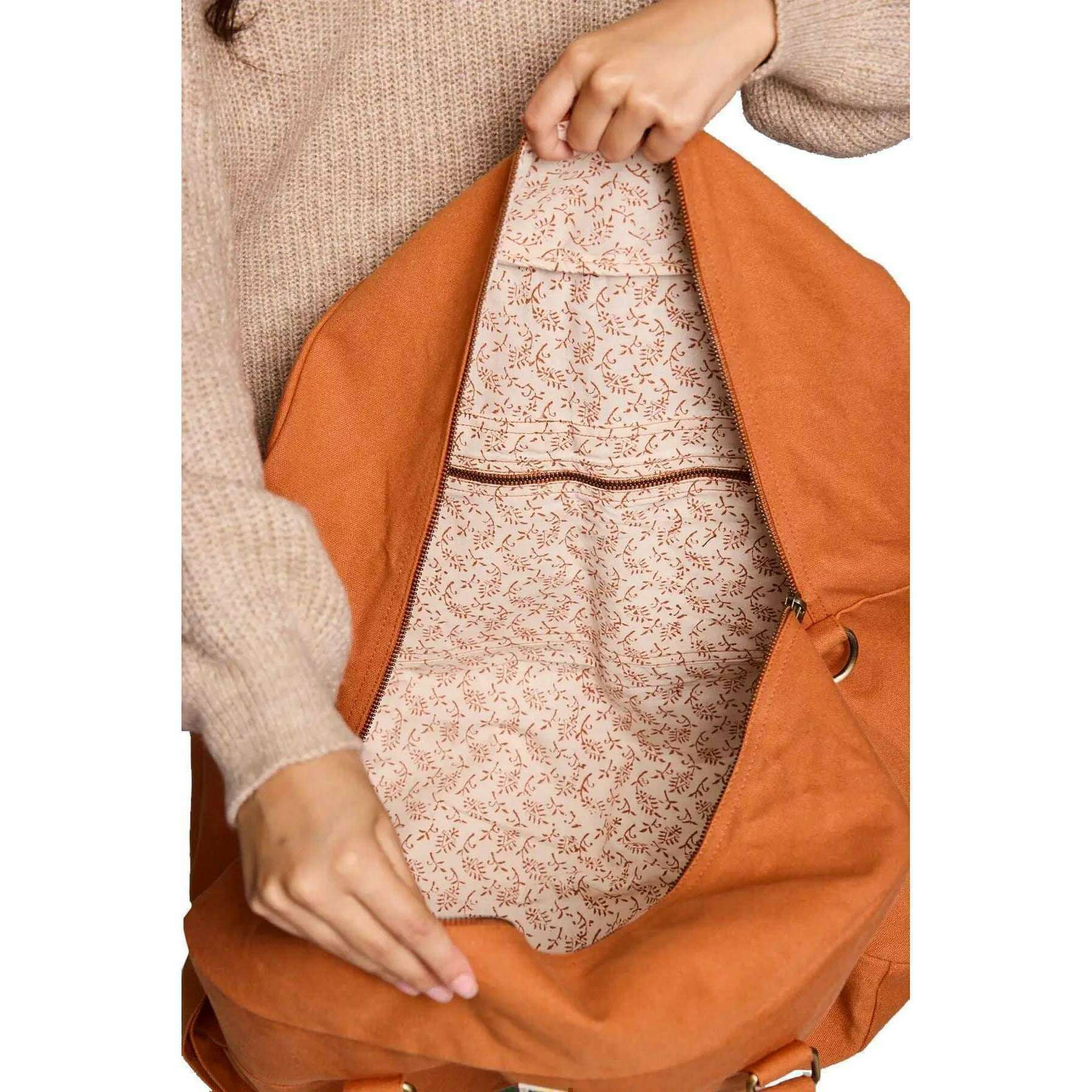 Perfekt för män eller kvinnor är den här bakväskan Sienna orange yves stor resväska, den är också tillverkad av 100% ekologisk bomull. Den mäter 33 cm (höjd) x 54 cm (bredd) x 24 cm (djup). Alla väskor levereras kompletta med bakpåsförpackning. Hindbag Yves Large Travel Bag - Sienna Orange är ett rymligt och miljövänligt alternativ för resenärer. Denna väska är utformad från tjocka, gots-certifierade organiska bomull och har flera fickor för organisation, en säker dragkedja och ett tryckt inre foder som ger en touch av elegans. Med sina handtag och stora justerbara axelrem kan denna väska enkelt bäras för hand eller på axeln.