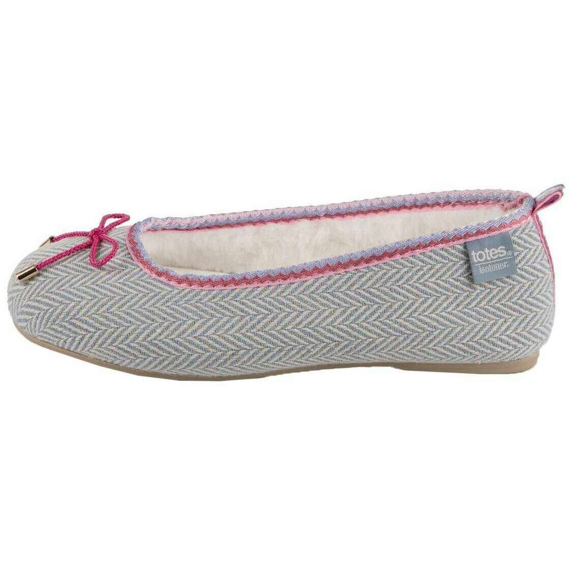 Dessa baletttofflor för damer från märket Isotoner är gjorda av 100 % polyester och visas i grått. Även de grå tofflorna är designade i fiskbensmönster. Det rekommenderas att inte tvätta och torka rent med en fuktig trasa för att hålla dessa tofflor i gott skick. Alla tofflor levereras kompletta med isotonerförpackning. Isotoner Herringbone Ballet Tofflor - Grå är ett måste i alla damkollektioner. Perfekt för att gå runt i huset med stil och extra stöd, värme och komfort från kuddstegsteknologin för dämpning under fötterna, extra memory foam och en slitstark sula. Den öppna designen håller dina fötter från att överhettas och lämnar en andningsbar känsla. Avslutad med en tjejig rosa rosett, trimdetaljer och fiskbensdesign för att komplettera detta underbara par.