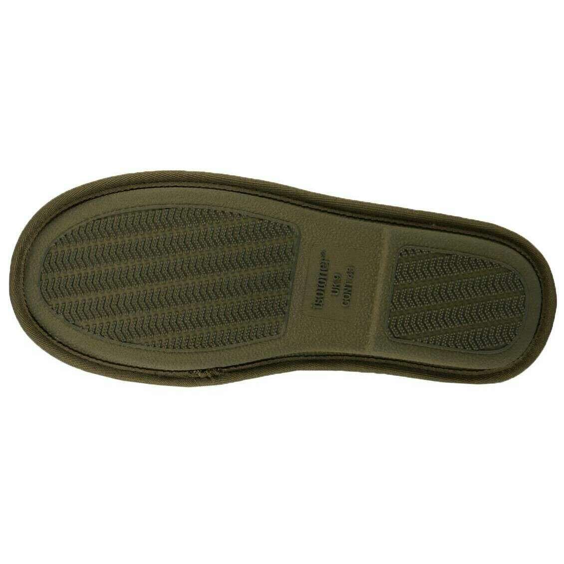 Dessa sportquiltade muletofflor för män av märket Isotoner är gjorda av 100 % polyester och visas i grönt. Även de khakigröna tofflorna är designade i ett vanligt mönster. Det rekommenderas att maskintvättas i 30 grader för att hålla dessa tofflor i gott skick. Alla tofflor levereras kompletta med isotonerförpackning. Isotoner Sport Quilted Mule Tofflor - Khaki Green på trenden, är ett bra par för alla män som vill ha komfort, stöd och värme. Detta par har komfort memory foam och kudddämpad teknik med ett skumlager som kommer att kännas som om du går på ett moln med häl- och fotvalvsstöd och en slitstark platt sula. Denna mulestil kommer att hålla dina fötter fina och rostiga med de mjuka materialen och täckningen av foten, samtidigt som den andas med en öppen rygg.