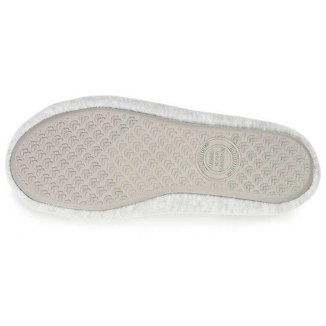 Perfekta för kvinnor är dessa Isotoner grå frottéballerina tofflor, de är också gjorda av 78% bomull, 17% polyester och 5% elastan. Även de grå tofflorna är designade i ett vanligt mönster. Det rekommenderas att maskintvättas i 30 grader för att hålla dessa tofflor i gott skick. Alla tofflor levereras kompletta med isotonerförpackning. Isotoner Terry Ballerina Tofflor - Grå är en nödvändighet i alla damkollektioner. Perfekt för att gå runt i huset med ett extra stöd, värme och komfort från den kudddämpade tekniken med ett skumlager, en slitstark sula och rikt bomullsmaterial. Den öppna toppdesignen håller dina fötter från att överhettas och lämnar en andningsbar känsla medan den strukturerade sulan lämnar en halksäker slitbana. Avslutade med en flickrosett för att fullborda detta underbara par.
