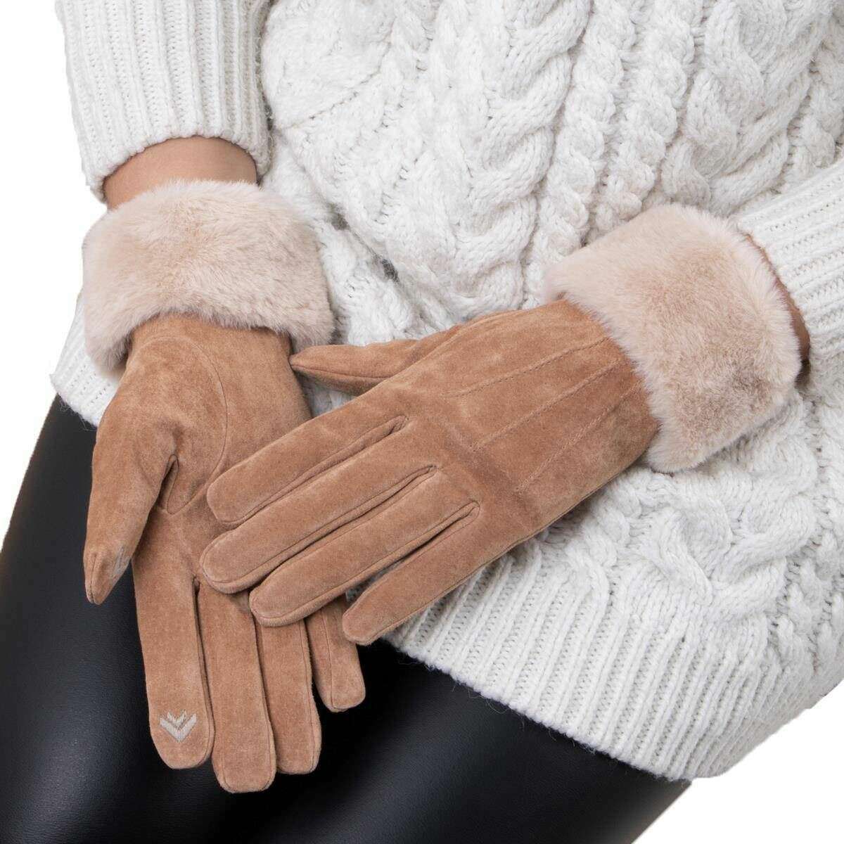 • SmarTouch-teknik på pekfingrar och tummar, äkta mocka, fuskpälsmanschett, ultramjukt foder