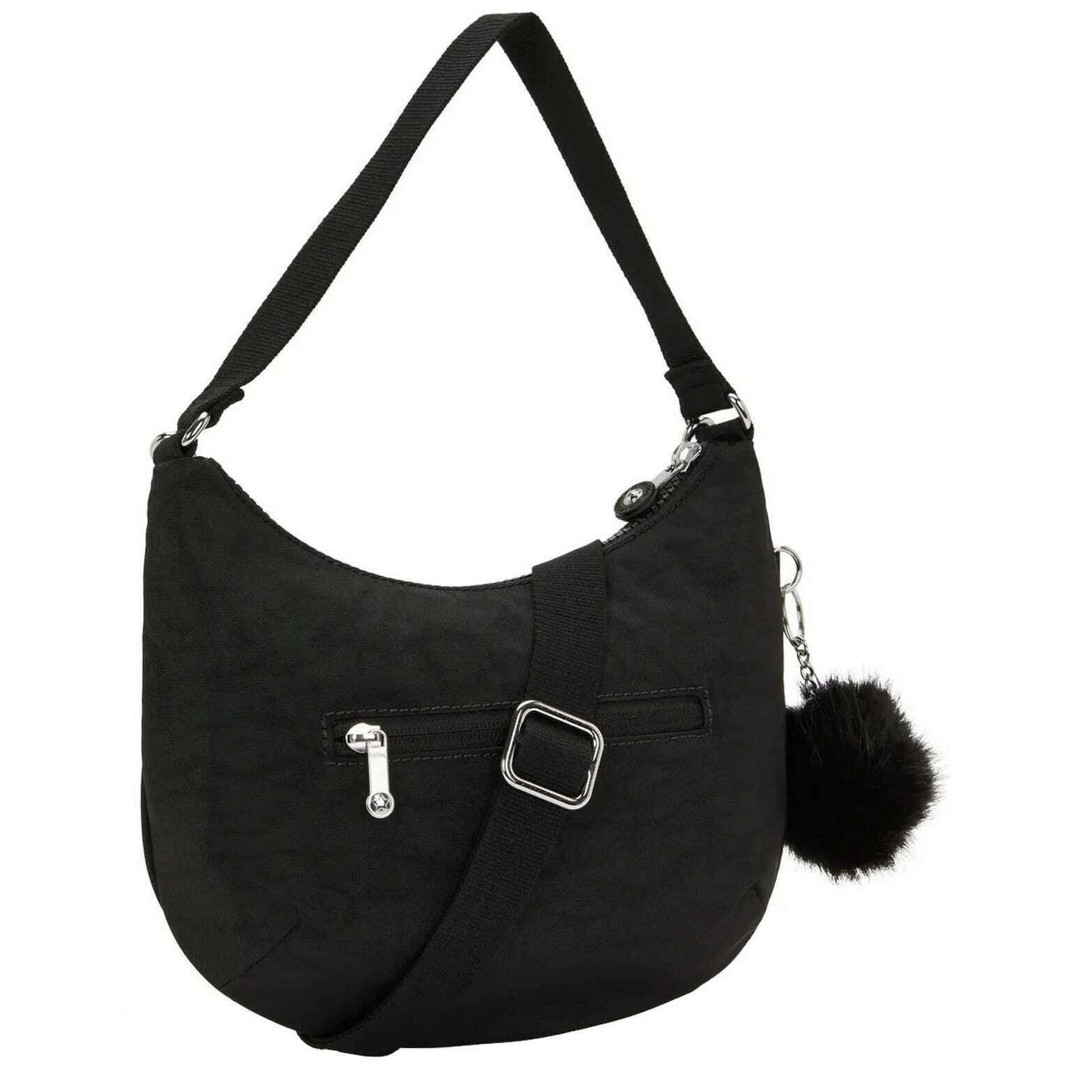 Denna amani-axelväska för kvinnor av märket Kipling är gjord av 100 % återvunnen polyester och visas i svart. Den mäter 22 cm (höjd) x 26,5 cm (bredd) x 10 cm (djup). Alla påsar levereras kompletta med kipling-förpackning. Kipling Amani Shoulder Bag - Black GG F25 är en chic, halvmåneformad axelväska designad för modernt vardagsbruk. Med en intern ficka med dragkedja och en bakficka med dragkedja för att säkra alla dina föremål, erbjuder denna axelväska två remalternativ, en kort axelrem och en längre justerbar och avtagbar rem så att du kan bära den som en axelväska eller sele crossbody. Signaturen apa nyckelring ger en lekfull touch till denna väska.