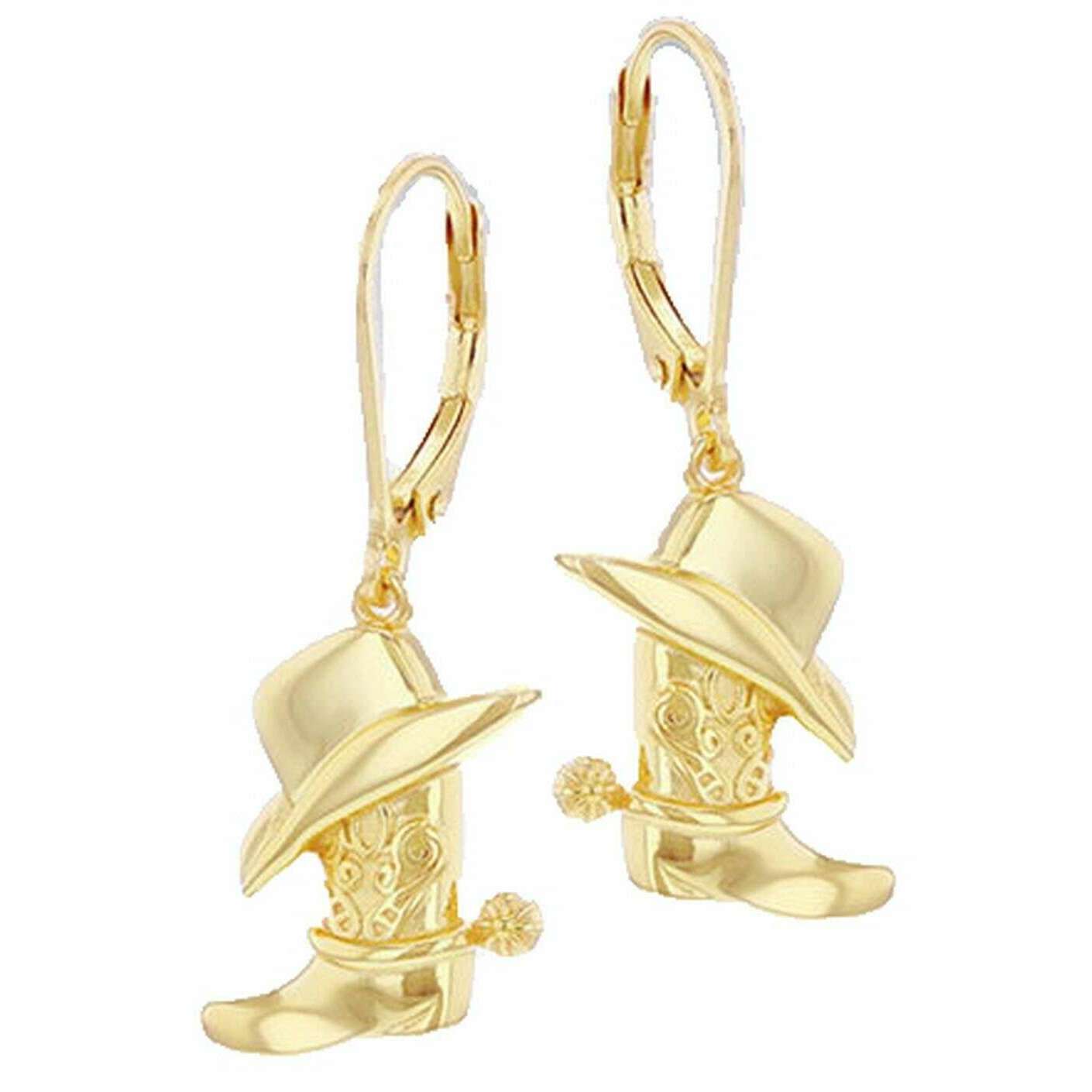 Vi introducerar dessa cowboyhatt för kvinnor och örhängen med backspak från KJ Beckett, de är tillverkade av sterling silver i en guldfärg. Alla örhängen kommer komplett med förpackning. KJ Beckett Cowboy Hat och Boot Lever Back Drop Earring - Gold är lekfulla men eleganta guldpläterade droppörhängen i sterling silver. Tillverkad av sterling silver och avslutad i glänsande guldplätering, varje örhänge har detaljerade cowboyhatt och kängor som fångar klassisk lantlig stil. Dessa örhängen är perfekta för vardagsbruk eller speciella tillfällen med västerländskt tema. De är en underbar present till cowgirl-entusiaster eller alla som älskar unika, nyckfulla smycken.