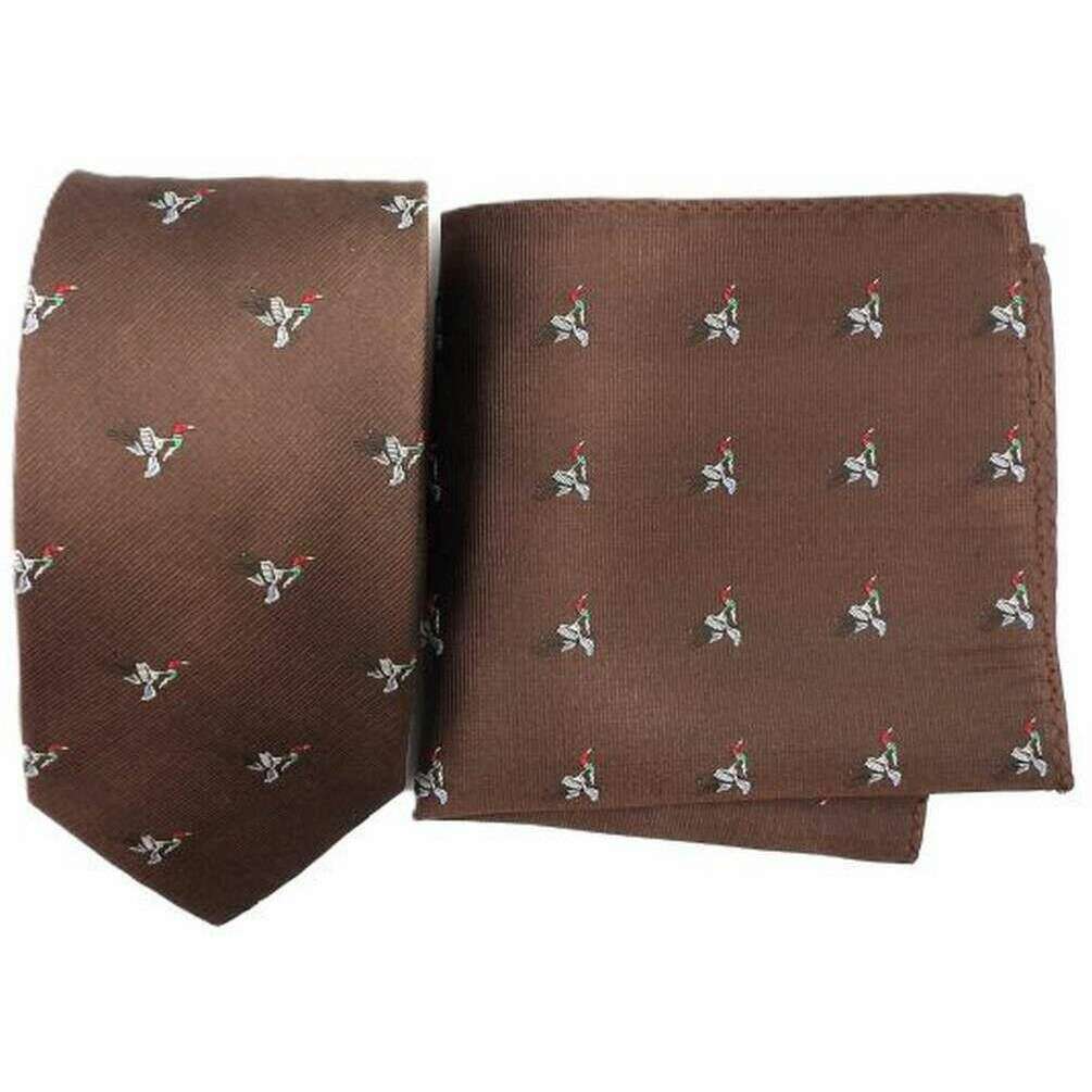 Knightsbridge Neckwear Duck Silk Tie and Pocket Square Set - Brun