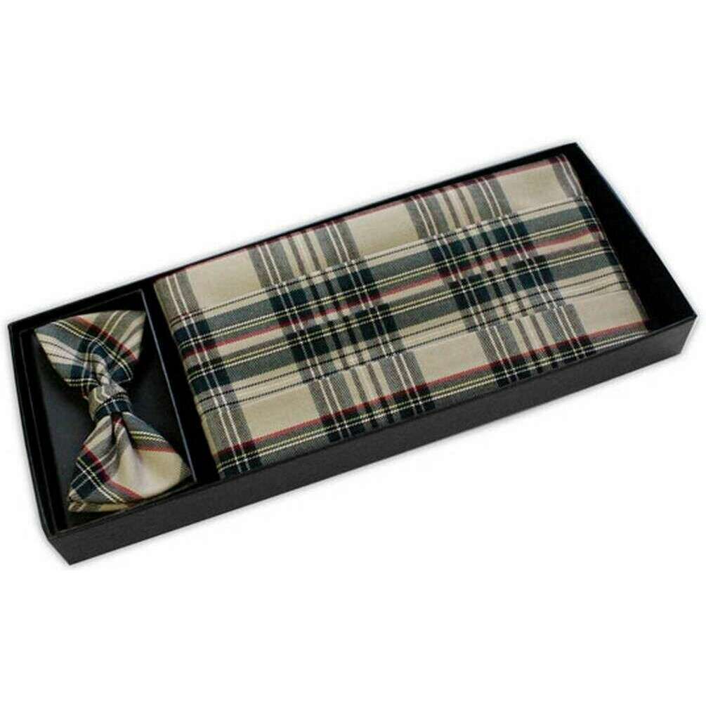 Knightsbridge Neckwear Tartan Cummerbund och fluga Set - Beige
