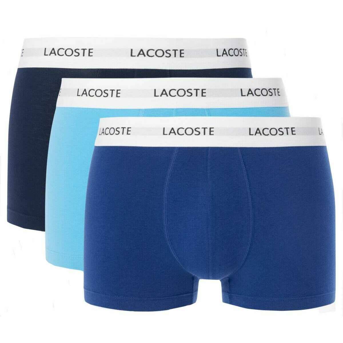 Lacoste 3-pack Stretch Trunks i bomull - metylen marinblå/argentinsk blå