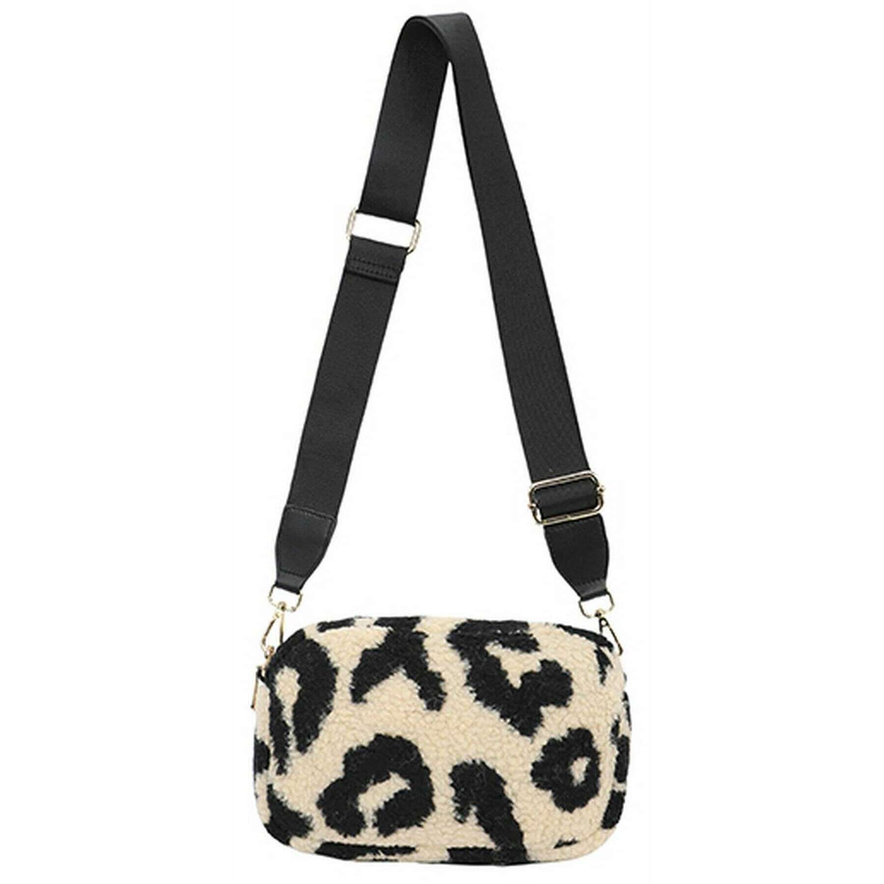 Long and Son Fluffy Crossbody Bag - Leopard Beige