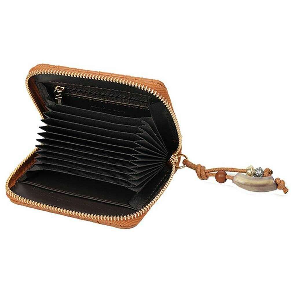• Dragkedja, RFID-blockeringsteknik, charmdetalj, 12 sektioner, korthållare, blixtlåsficka