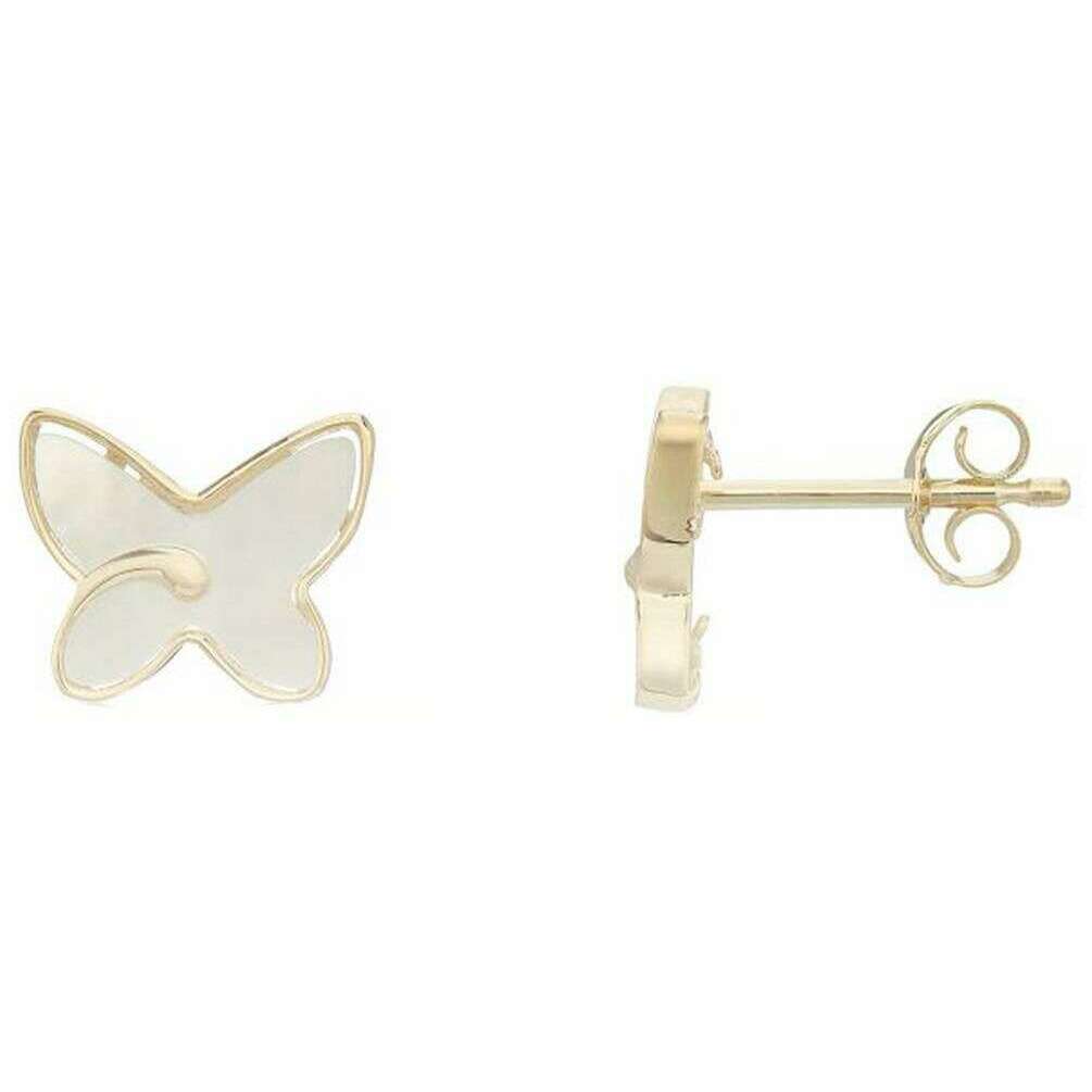 Mark Milton Mother of Pearl Butterfly Stud Örhängen - Gult Guld/Vit