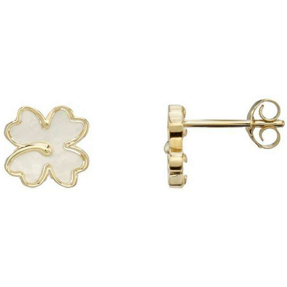 Mark Milton Mother of Pearl Four Leaf Clover Stud örhängen - Gult Guld/Vit