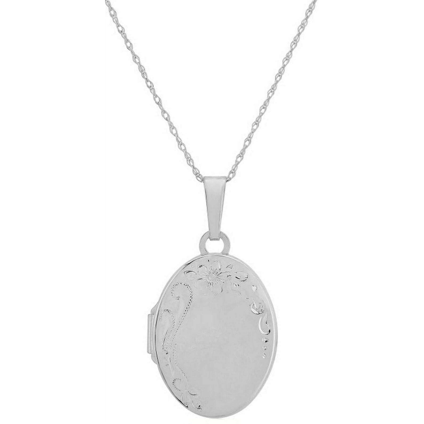 Designern Mark Milton har gett dig detta damhalsband i sterlingsilver i silvertoner. Den mäter 46 cm (längd). Alla halsbanden levereras kompletta med mark Milton-förpackning. Mark Milton Oval Engraved Locket Necklace - Silver har en delikat silver, handgraverad design på framsidan och en slät satinfinish på baksidan. Idealisk storlek, denna meningsfulla present är perfekt för minibilder av nära och kära och till och med små minnen.
