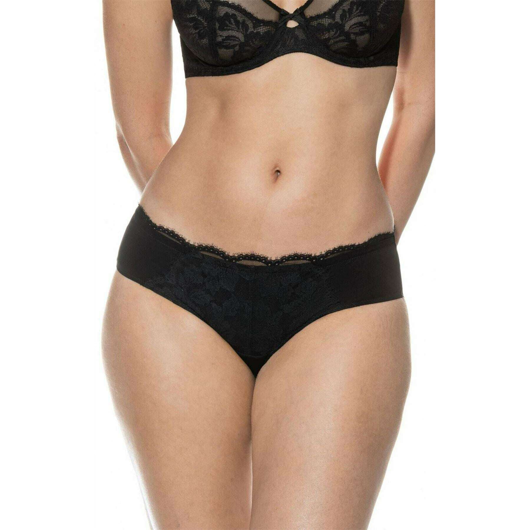 Designern Mey har gett dig dessa damunderkläder i 78 % polyamid och 22 % elastan i svarta toner. Även de svarta underkläderna är designade i ett vanligt mönster. Det rekommenderas att maskintvättas i 30 grader för att hålla dessa underkläder i gott skick. Alla underkläder kommer komplett med förpackning. Mey Amazing Hipster Briefs - Black är ett måste om du letar efter en basic med en underbar touch för en feminin känsla. Detta par har en djup mid-rise, ett bomullsinlägg på kilen, sömlösa ben och ett smalt midjeband som alla bidrar till att ge optimal komfort för vardagsbruk. Spets framtill och midjeband ger en elegant stil.
