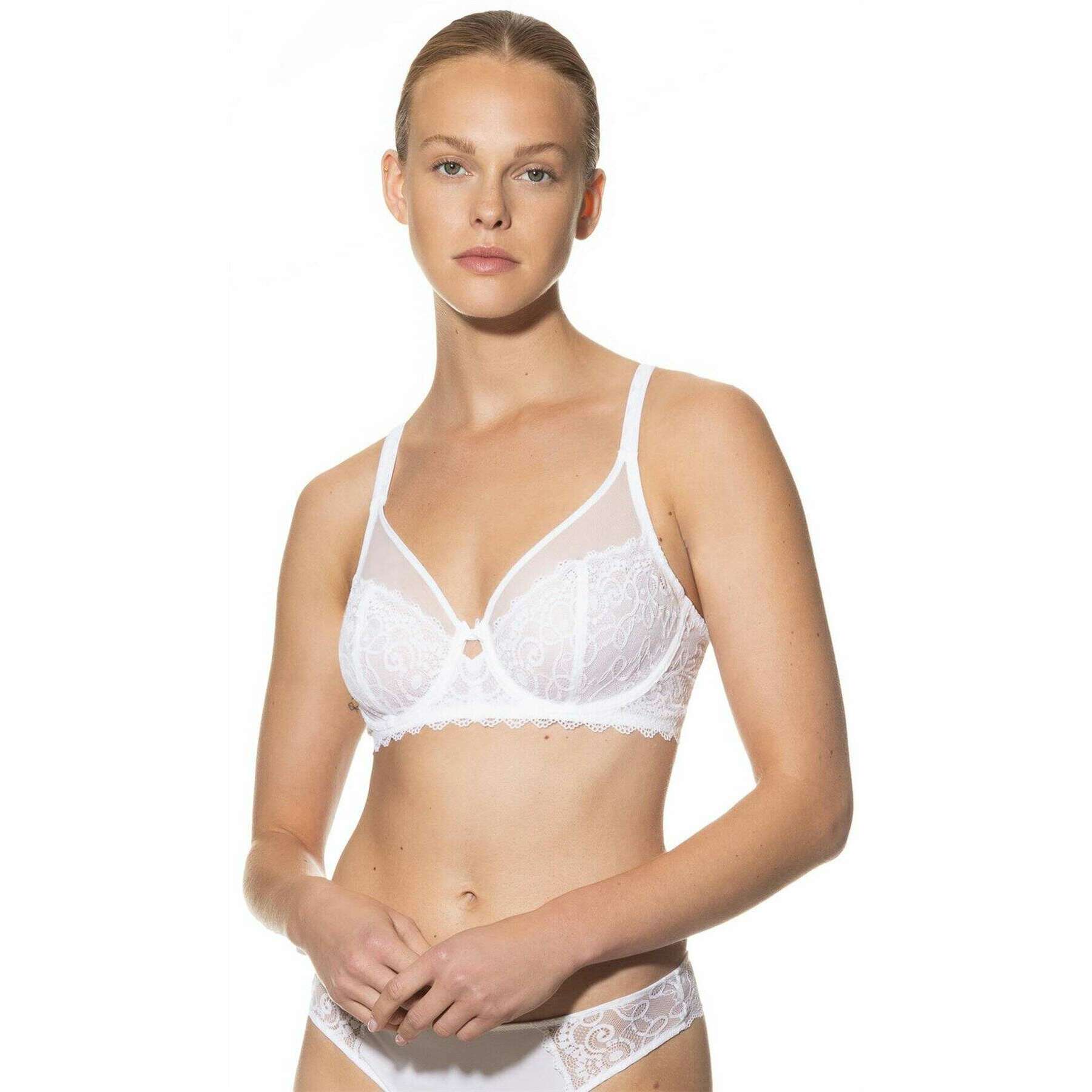 Tillverkad av 76 % polyamid och 24 % elastan är den här vita, amorösa bh:n med hög spets för kvinnor av designern Mey. Även de vita underkläderna är designade i ett vanligt mönster. Det rekommenderas att handtvättas för att hålla dessa underkläder i gott skick. Alla underkläder kommer komplett med förpackning. Mey Amorous High Apex Wired BH - White har utformats för att ge komfort samtidigt som den ser sexig och feminin ut. De ovadderade sydda kupor och de justerbara remmarna ger perfekt passform för stöd. Krok- och öglefästning med tre olika justerbara alternativ ger dig utrymme att röra dig och växa. Denna design har gjorts för att fördela vikten till underbysten istället för dina axlar för extra komfort när du är ute och går. Den grafiska spetsen och den dekorativa rosetten kompletterar denna look.