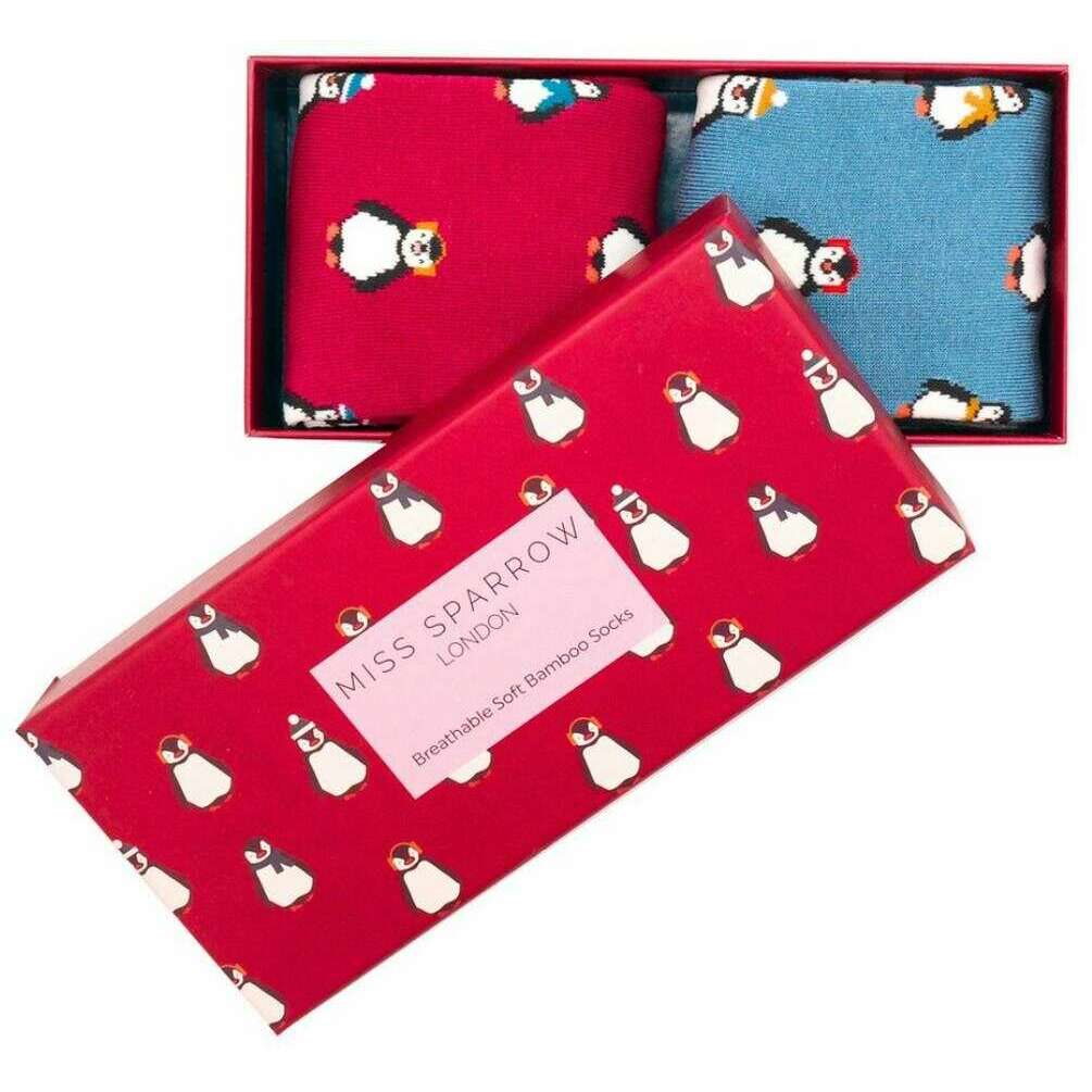 Miss Sparrow London 2-pack Baby Penguins Sock Box - Röd/Blå