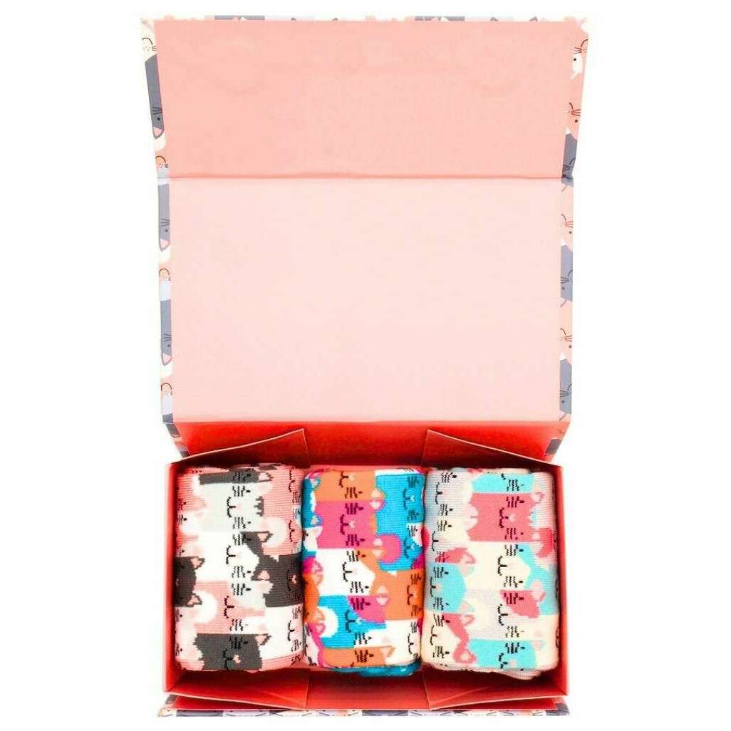 Miss Sparrow London 3-pack Happy Cats Sock Box - Rosa/Blå
