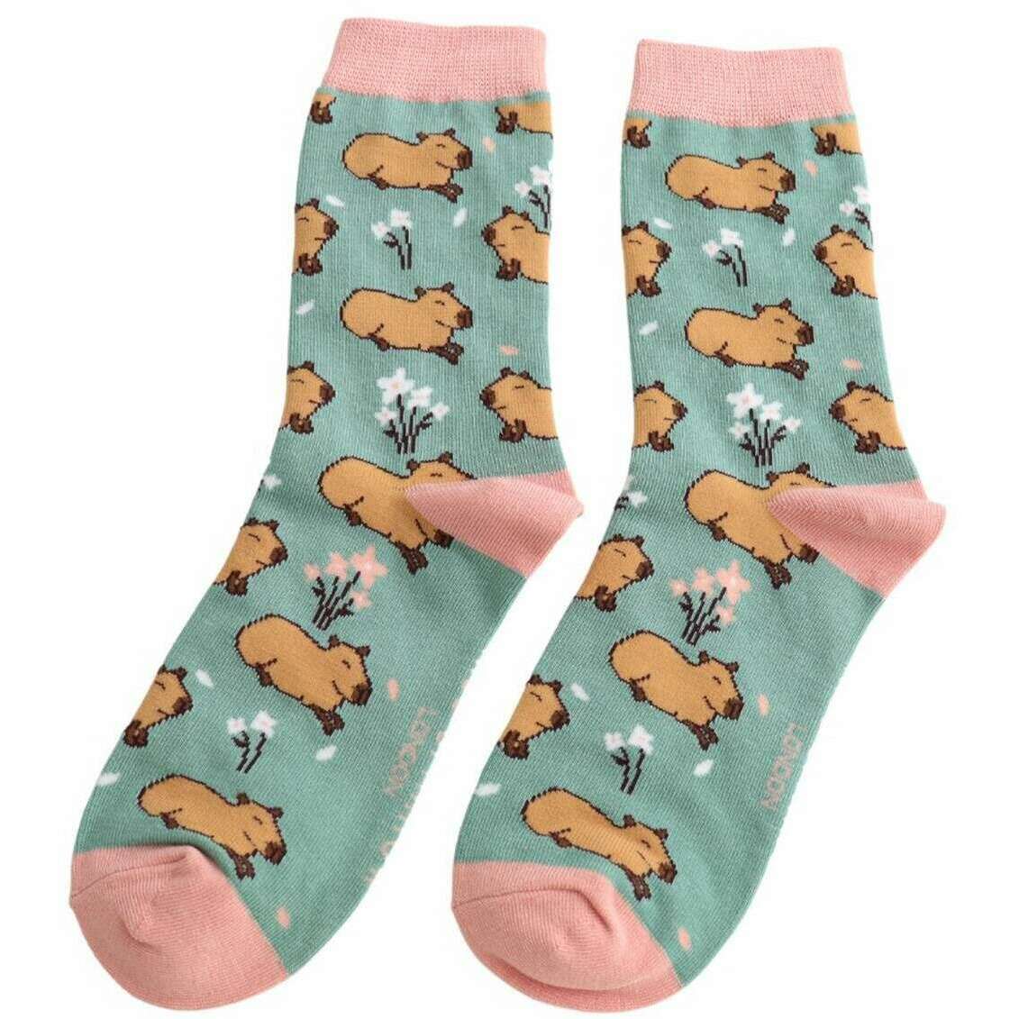 Miss Sparrow London Söta Capybara Bamboo Strumpor - Grön