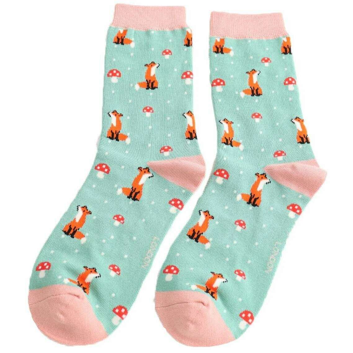 Miss Sparrow London Fox and Toadstool Bamboo Socks - Grön
