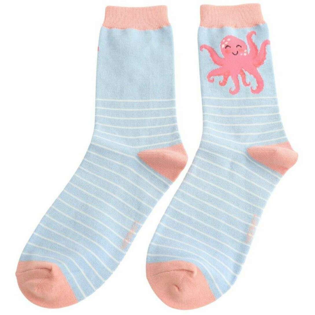 Miss Sparrow London Pink Octopus Bamboo Strumpor - Puderblå