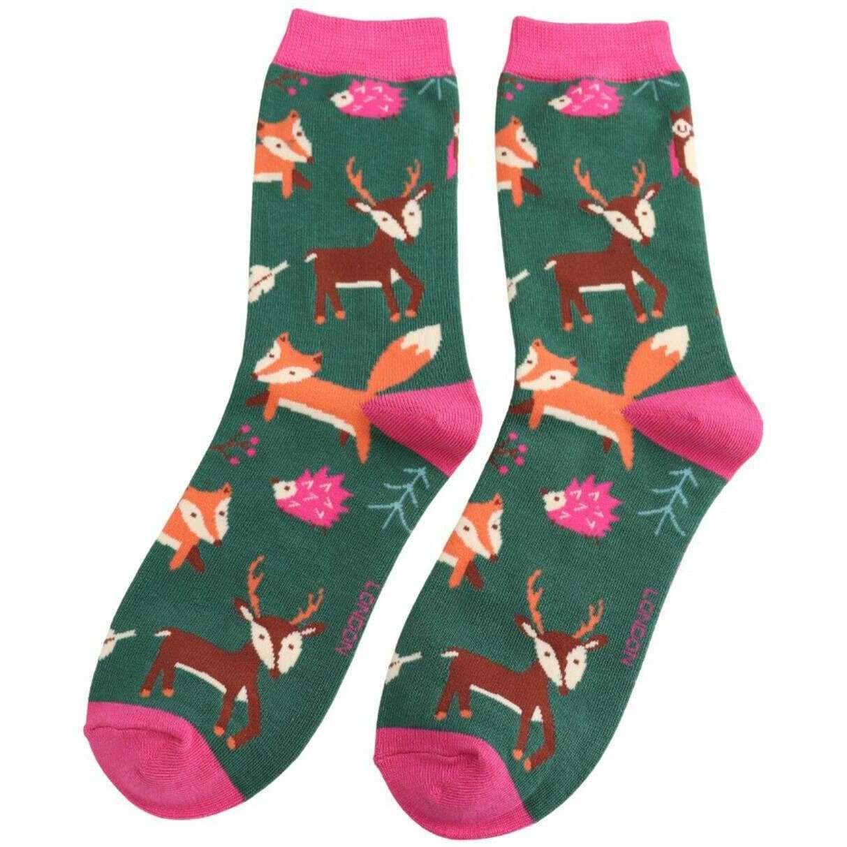 Miss Sparrow London Woodland Animals Bambustrumpor - Mörkgrön
