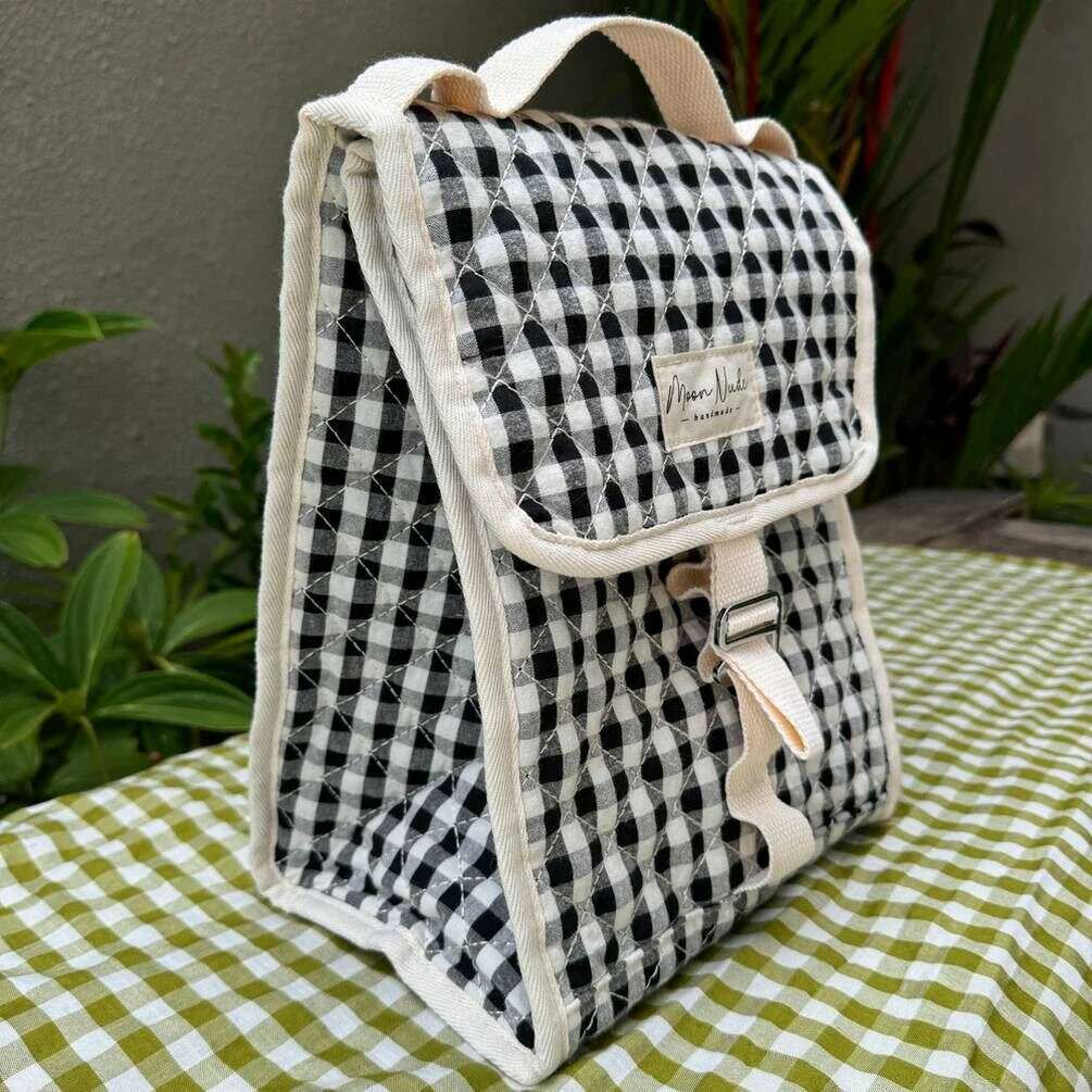 Den här klassiska matkassen för kvinnor i svart/vit är tillverkad av 100 % bomull, från märket Moon Nude. Den mäter 28 cm (höjd) x 22,5 cm (bredd) x 17,5 cm (djup). Det rekommenderas att tvätta för hand i kallt vatten med ett milt rengöringsmedel, eller maskintvätt ut och in på ett ömtåligt program. för att hålla denna väska i gott skick. Alla väskorna levereras kompletta med moon nude-förpackning. Moon Nude Classic Lunch Bag - Svart/Vit är ett måste när du reser till jobbet eller för barnluncher. Denna matkasse har en isolerad insida så att dina varma saker är varma och dina kalla saker kalla! Denna väska har också en vacker handgjord quiltad design, säker på att fånga ögonen på alla du känner.
