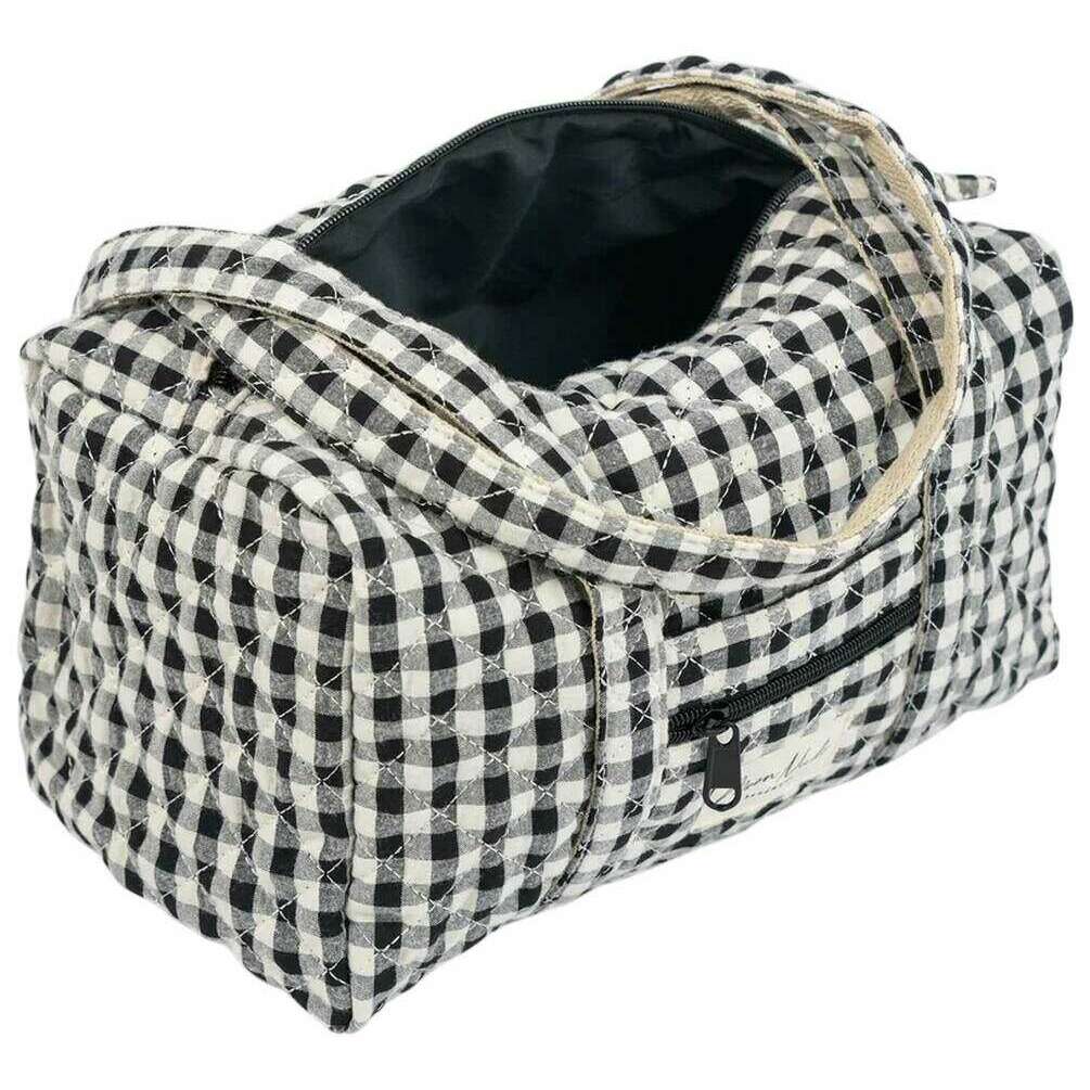 Denna välgjorda klassiska mini kappsäck för kvinnor från Moon Nude kommer i en svart/vit färg och är tillverkad av 100% bomull. Den mäter 18 cm (höjd) x 31 cm (bredd) x 18 cm (djup). Det rekommenderas att tvätta för hand i kallt vatten med ett milt rengöringsmedel, eller maskintvätt ut och in på ett ömtåligt program. för att hålla denna väska i gott skick. Alla väskorna levereras kompletta med moon nude-förpackning. Moon Nude Classic Mini Duffel Bag - Svart/Vit har en vacker handgjord quiltad design. Den här väskan har en yttre ficka med dragkedja, en rymlig interiör och två stora handtag, perfekt för en ledig väska eller som present.