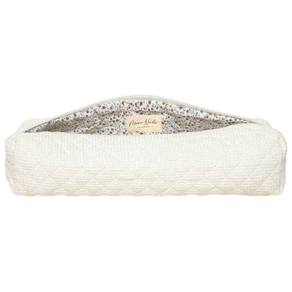 Till dig av märket Moon Nude, denna krämfärgade hårverktygsväska för kvinnor är gjord av 100 % bomull. Den mäter 8 cm (höjd) x 40 cm (bredd) x 12 cm (djup). Det rekommenderas att tvätta för hand i kallt vatten med ett milt rengöringsmedel, eller maskintvätt ut och in på ett ömtåligt program. för att hålla denna väska i gott skick. Alla väskorna levereras kompletta med moon nude-förpackning. Moon Nude Hair Tool Bag - Cream är en absolut nödvändighet för ditt rum eller resväska. Denna hårverktygsväska håller garanterat alla dina hårprodukter samlade och säkra, samtidigt som den är snygg och chic med sin handgjorda quiltade design.