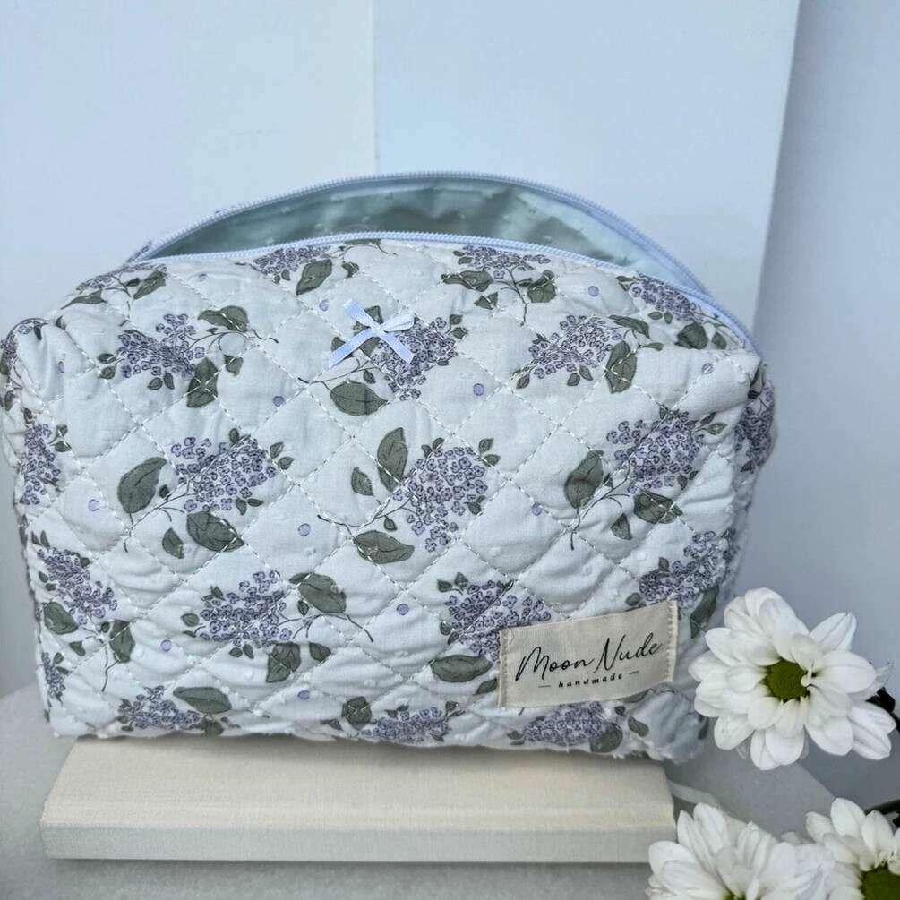 Designern Moon Nude har gett dig denna väska i 100 % bomull för kvinnor med vita/gråa toner. Den mäter 15 cm (höjd) x 25 cm (bredd) x 15 cm (djup). Det rekommenderas att tvätta för hand i kallt vatten med ett milt rengöringsmedel, eller maskintvätt ut och in på ett ömtåligt program. för att hålla denna väska i gott skick. Alla väskorna levereras kompletta med moon nude-förpackning. Moon Nude Lilac Large Makeup Bag - Vit/Grå är en absolut nödvändighet för ditt rum eller vardagsväska. Denna sminkväska håller garanterat alla dina mest använda produkter samlade och säkra, samtidigt som den är snygg och chic med sin handgjorda quiltade design.