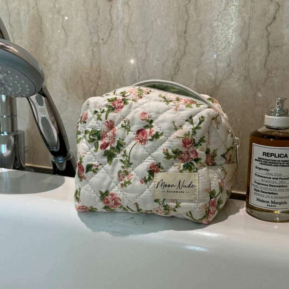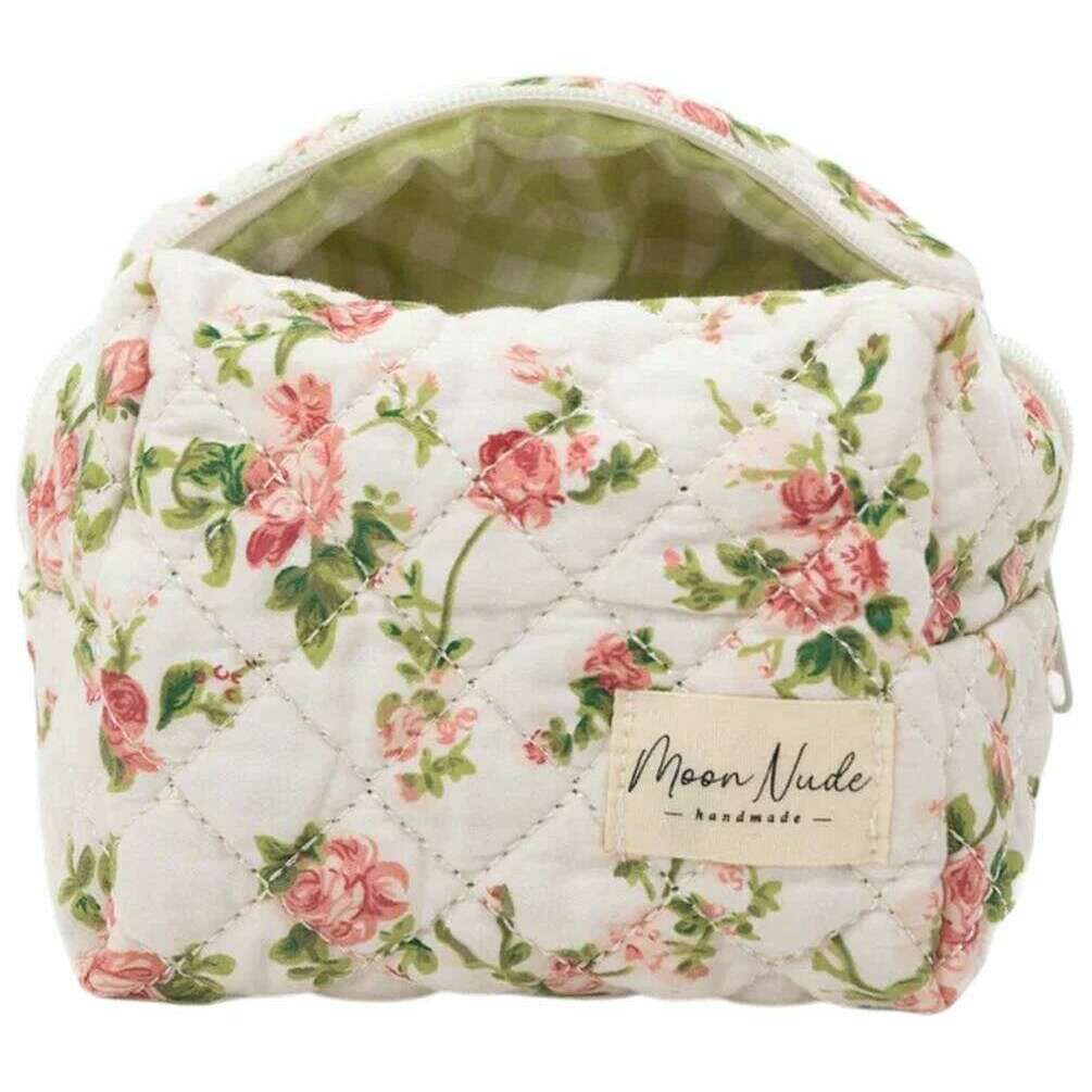 Denna vita/rosa/gröna sminkväska för kvinnor är tillverkad av 100 % bomull, från märket Moon Nude. Den mäter 13 cm (höjd) x 15 cm (bredd) x 11 cm (djup). Det rekommenderas att tvätta för hand i kallt vatten med ett milt rengöringsmedel, eller maskintvätt ut och in på ett ömtåligt program. för att hålla denna väska i gott skick. Alla väskorna levereras kompletta med moon nude-förpackning. Moon Nude Roze Mini Makeup Bag - Vit/Rosa/Grön är en absolut nödvändighet för ditt rum eller vardagsväska. Denna sminkväska håller garanterat alla dina mest använda produkter samlade och säkra, samtidigt som den är snygg och chic med sin handgjorda quiltade design.