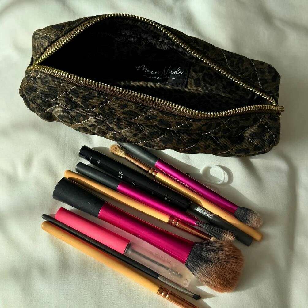 Detta bruna/svarta pennfodral för kvinnor kommer från märket Moon Nude och är tillverkat av 100 % bomull. Den mäter 7 cm (höjd) x 24 cm (bredd) x 6 cm (djup). Det rekommenderas att tvätta för hand i kallt vatten med ett milt rengöringsmedel, eller maskintvätt ut och in på ett ömtåligt program. för att hålla detta pennfodral i gott skick. Alla pennfodral levereras kompletta med moon nude-förpackning. Moon Nude Savanna Pennfodral - Brun/Svart är en absolut nödvändighet för jobbet eller skolan. Detta pennfodral kommer garanterat att hålla alla dina stationära saker på ett ställe, samtidigt som det är snyggt och chic med sin handgjorda quiltade design.