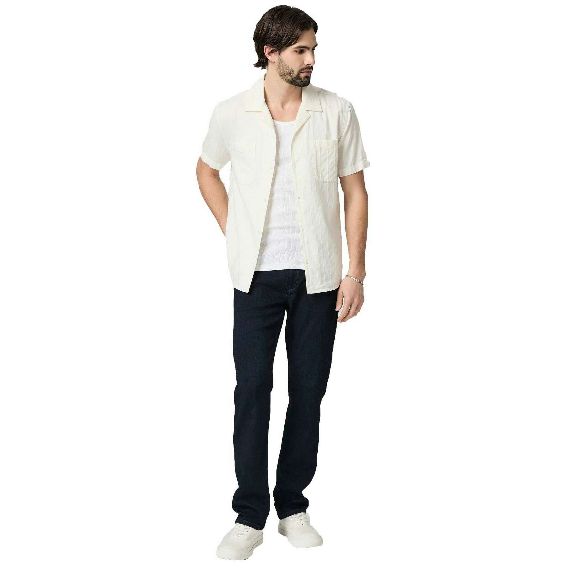 Dessa federala smala raka jeans för män har tillverkats av 54 % rayon, 23 % bomull, 22 % polyester och 1 % spandex, presenterade i en blå färg och är från märket PAIGE. Även de blå jeansen med bläckhus är designade i ett vanligt mönster. Det rekommenderas att vända plagget ut och in, använda kallt vatten på en försiktig cykel och hänga torrt för att hålla dessa jeans i gott skick. Alla jeans kommer komplett med paige-taggar. PAIGE Federal Slim Straight Jeans - Inkwell Blue har tillverkats av den berömda denimtranscenden som är mycket populär och omtyckt. Detta mångsidiga moderna slim fit-par som sitter löst genom låret och rakt från knäet och ner kan stylas på oändliga sätt och är ett måste att ha i din samling. Med ett högtöjbart material säkerställer den högsta komforten för ett perfekt vardagsbruk.
