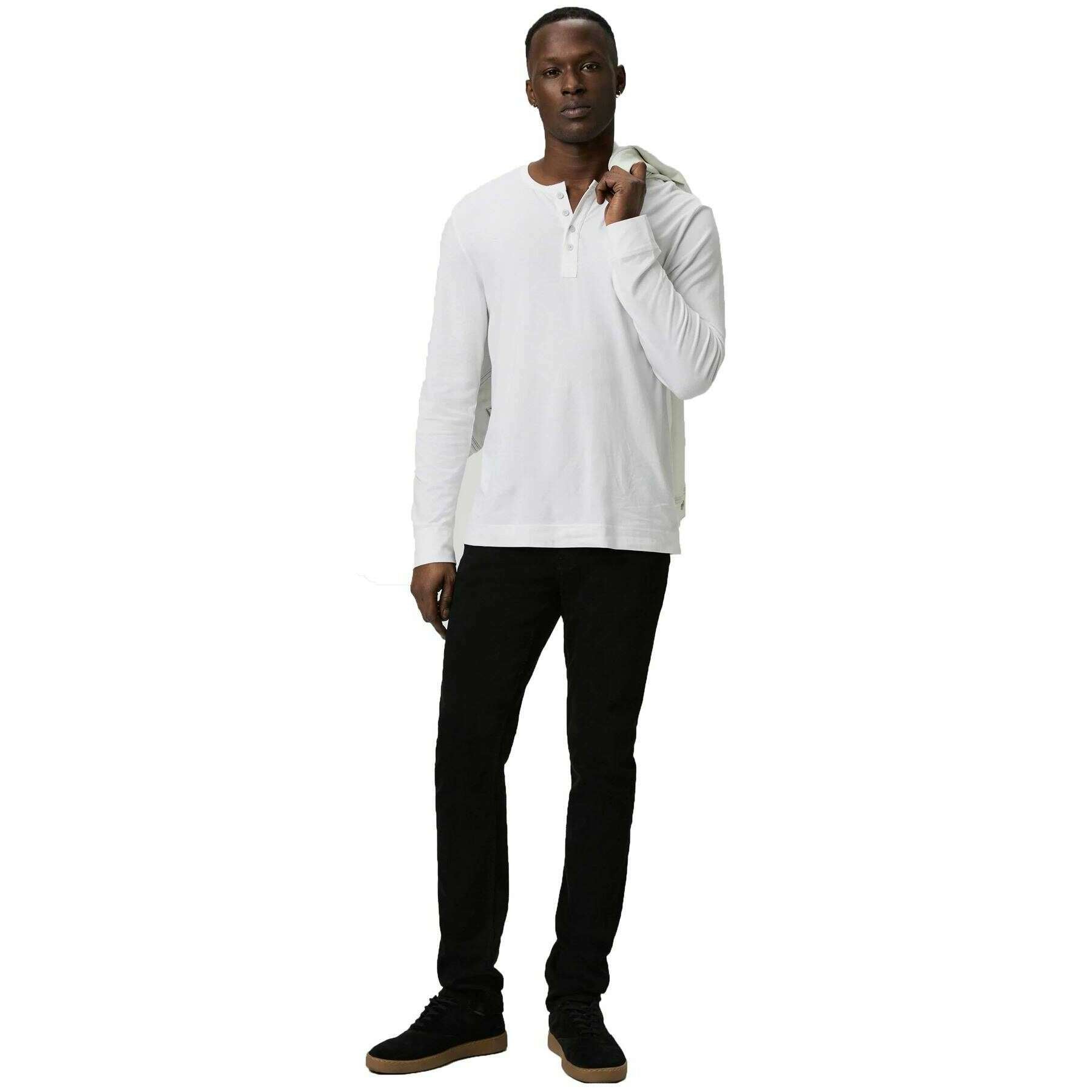 Dessa slimmade lennox-jeans för män av märket PAIGE är gjorda av 54 % rayon, 23 % bomull, 22 % polyester och 1 % spandex och visas i svart. Även de svarta skuggjeansen är designade i ett vanligt mönster. Det rekommenderas att vända plagget ut och in, använda kallt vatten på en försiktig cykel och hänga torrt för att hålla dessa jeans i gott skick. Alla jeans kommer komplett med paige-taggar. PAIGE Lennox Slim Jeans - Black Shadow har tillverkats av den berömda denimtranscenden som är mycket populär och omtyckt. Detta mångsidiga slim fit-par som smalnar av från knäet och neråt kan stylas på oändliga sätt och är ett måste att ha i din samling. Med ett högtöjbart material säkerställer den högsta komforten för ett perfekt vardagsbruk.